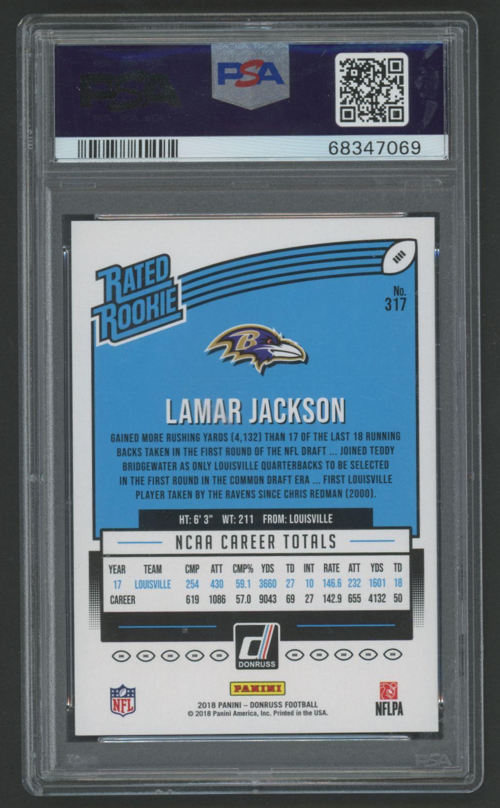 Lamar Jackson 2018 Donruss RR #317 RC (PSA 9)