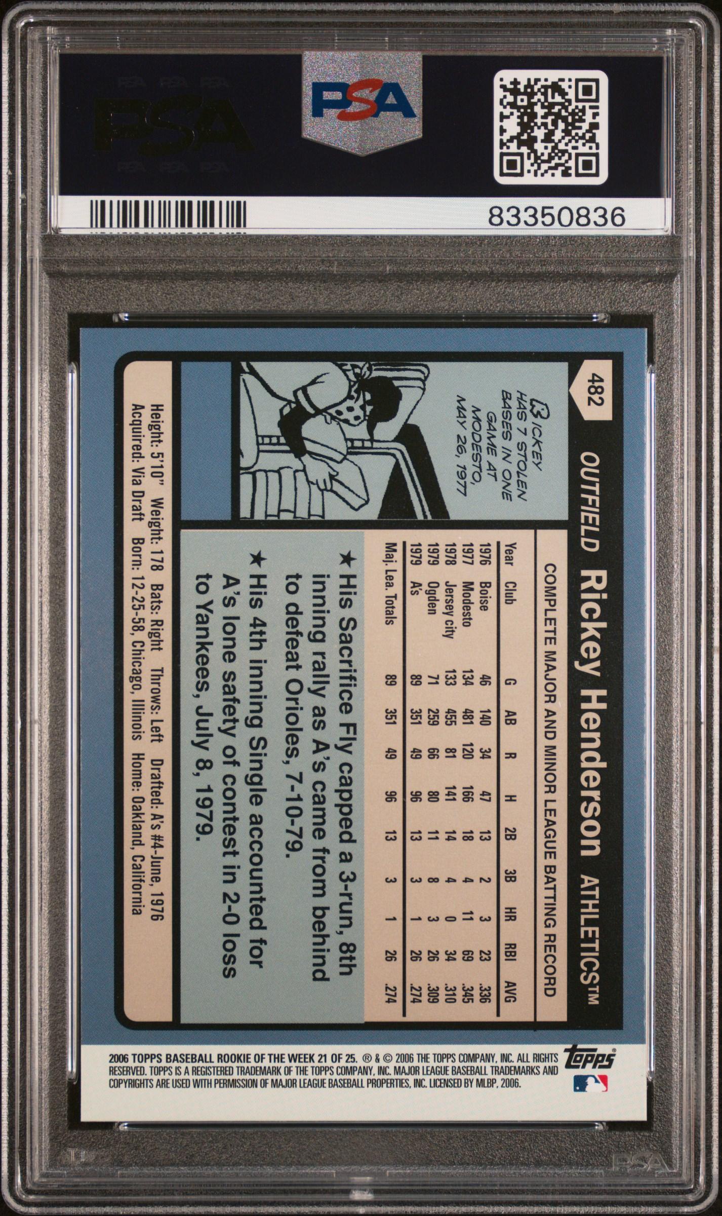 Rickey Henderson 2006 Topps Rookie of the Week #21 (PSA 9)