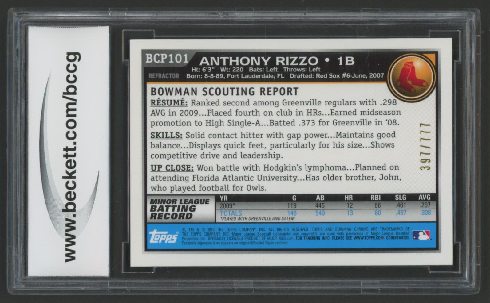 Anthony Rizzo 2010 Bowman Chrome Prospect Refractors #BCP101A #397/777 (BCCG 9)