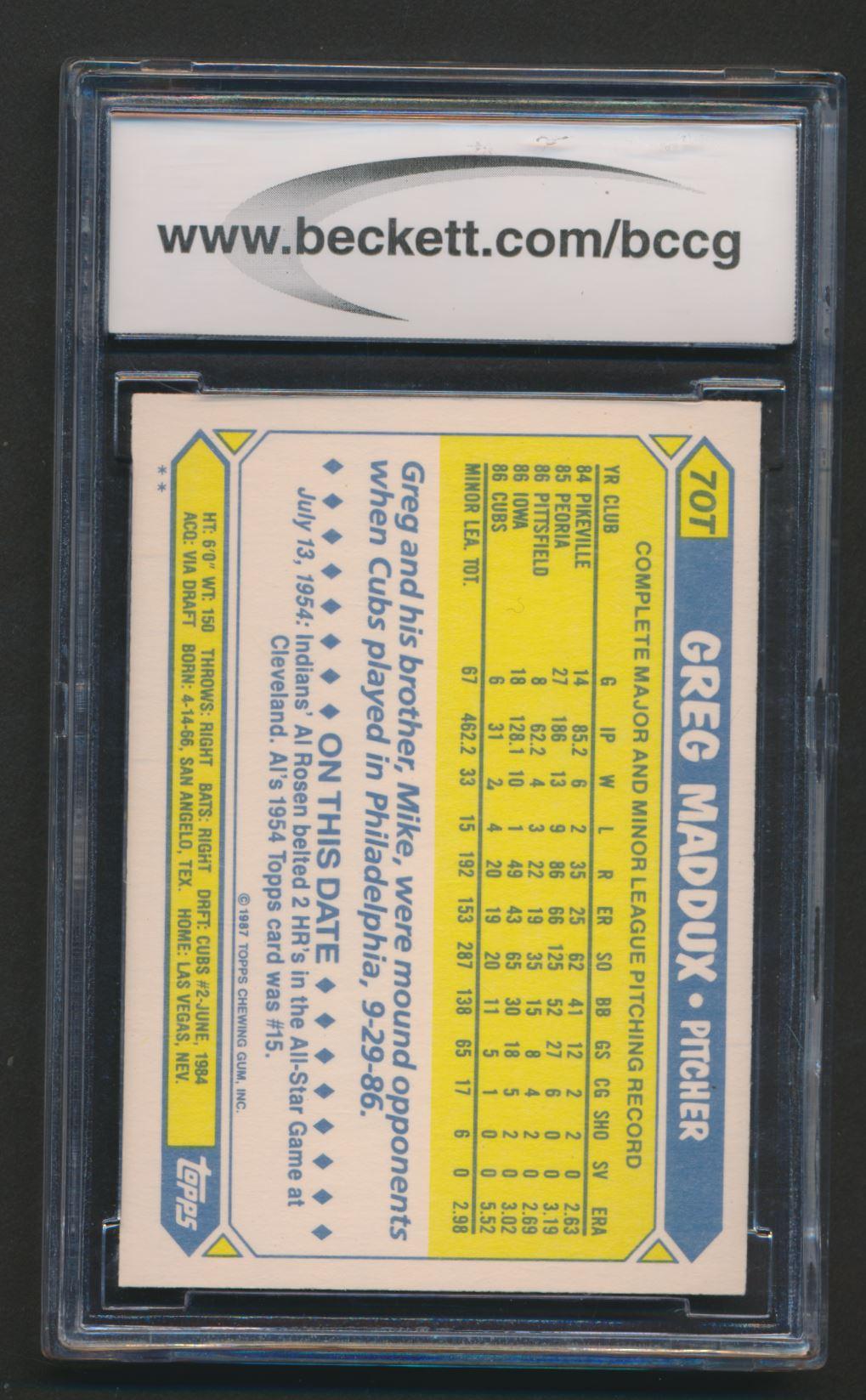 Greg Maddux 1987 Topps Traded #70T (BCCG 10)