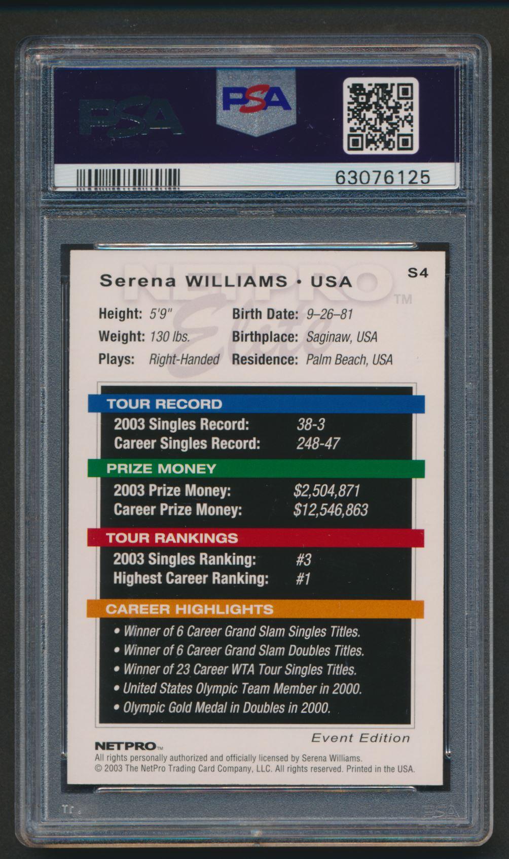 Serena Williams 2003 NetPro Elite Event Starter #4 (PSA 10)