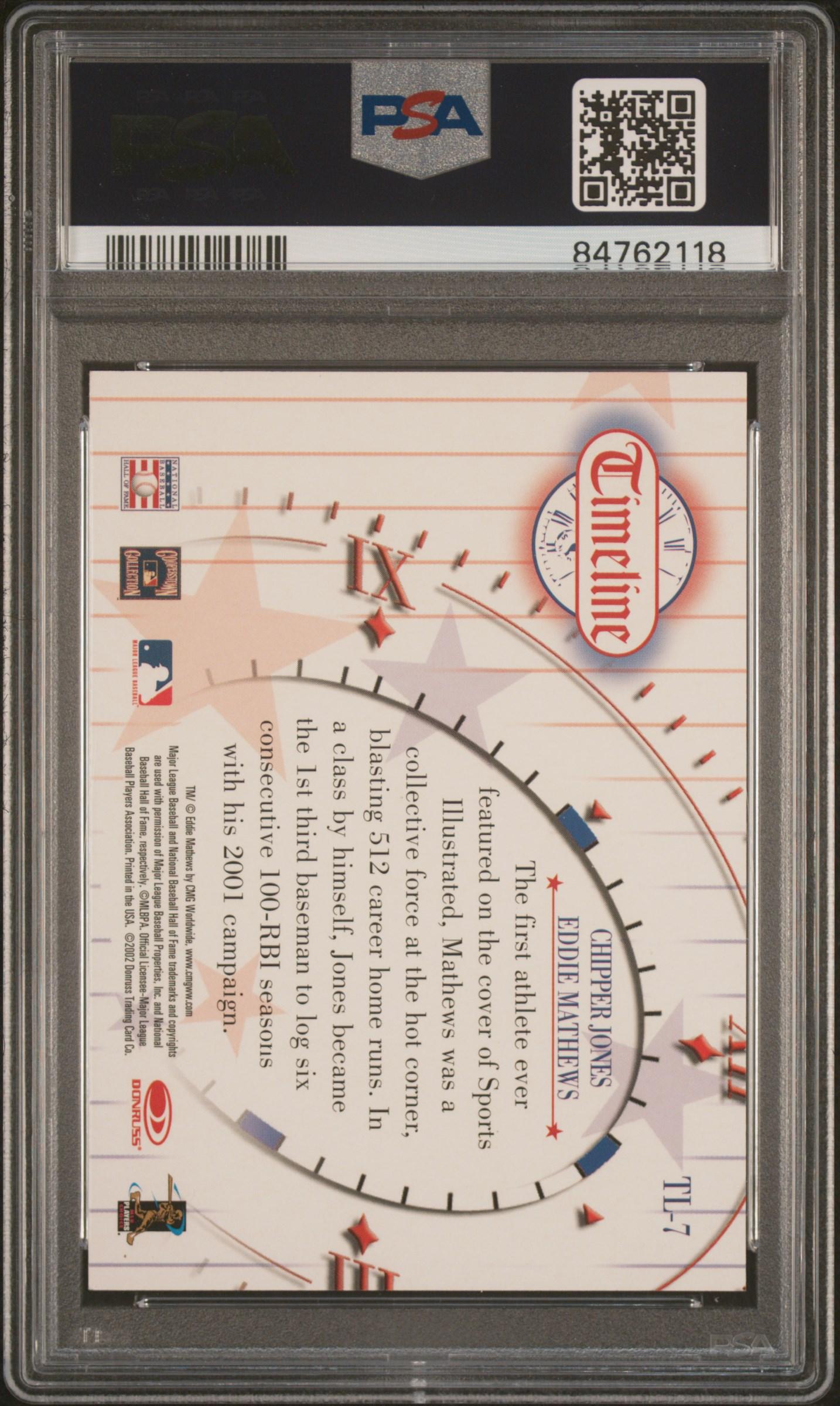 Chipper Jones / Ed Mathews 2002 Donruss Diamond Kings Timeline #TL7 (PSA 10)
