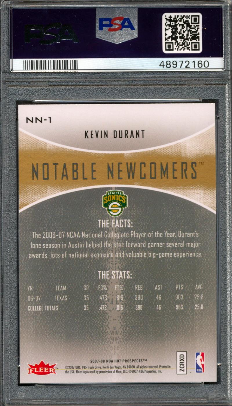Kevin Durant 2007-08 Fleer Hot Prospects Notable Newcomers #NN-1 RC (PSA 9)