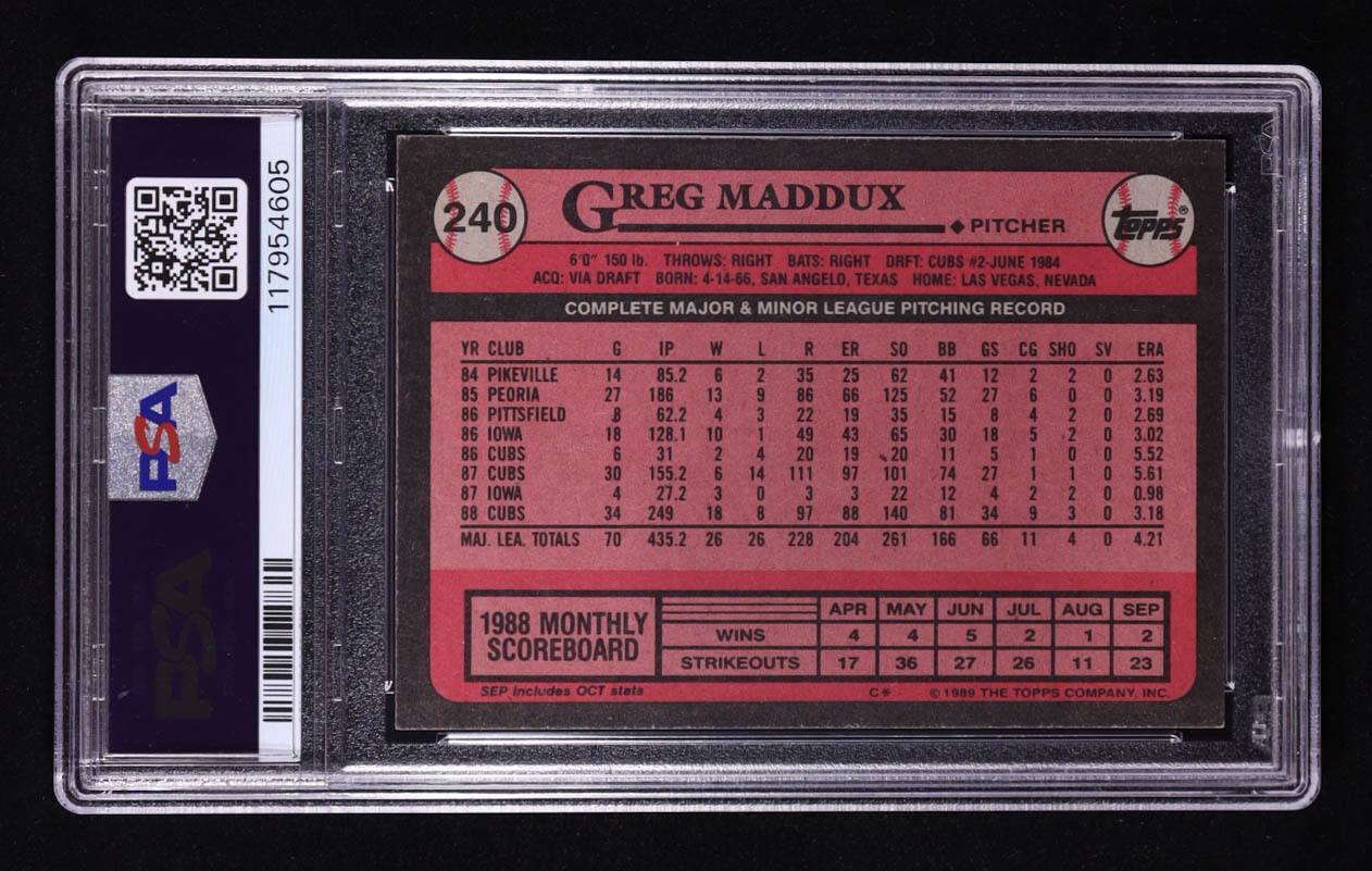 Greg Maddux Signed 1989 Topps #240 (PSA 8)