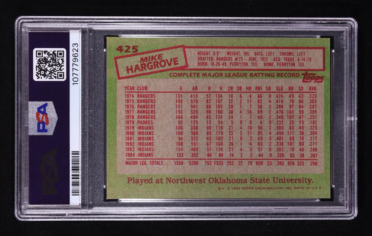 Mike Hargrove Signed 1985 Topps #425 (PSA 8)