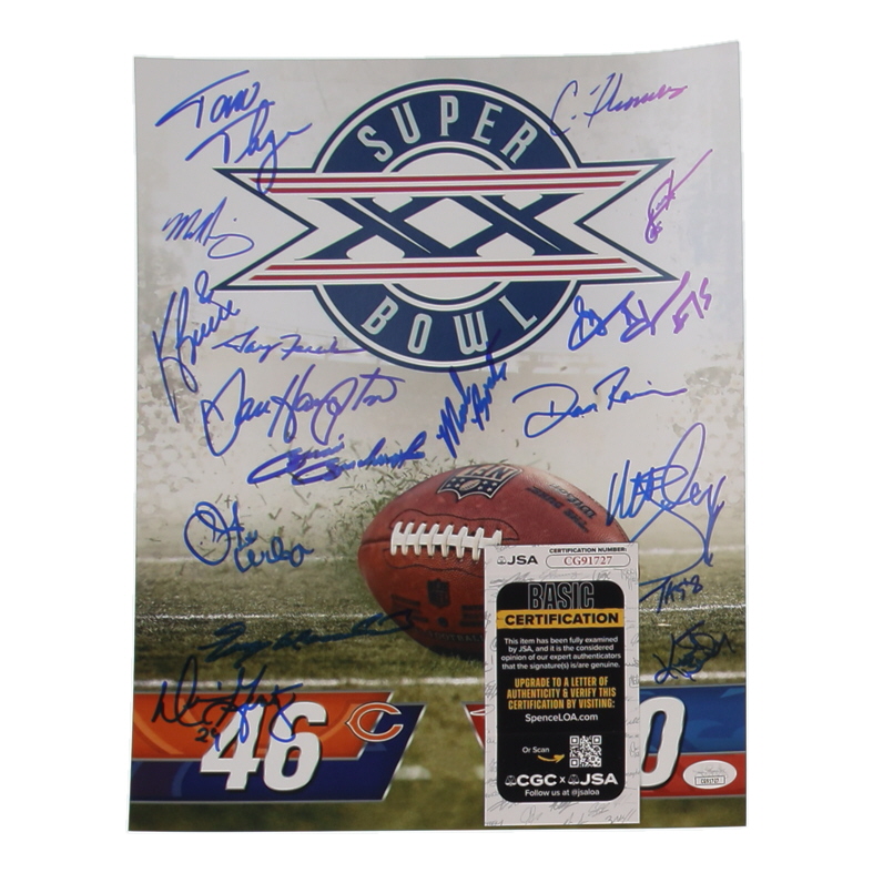 1985 Chicago Bears Super Bowl Champs 11x14 Photo Team-Signed by (17) with Dan Hampton, Mike Singletary, Tom Thayer, & Otis Wilson (JSA)