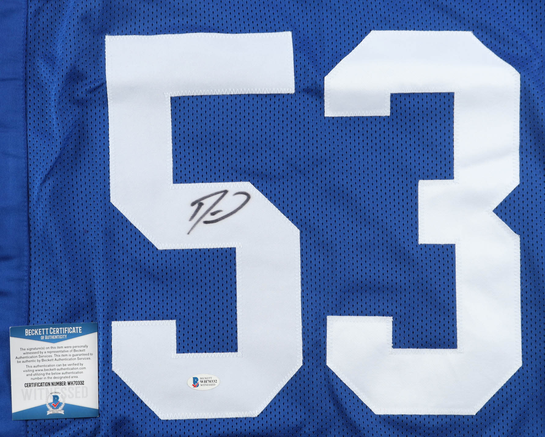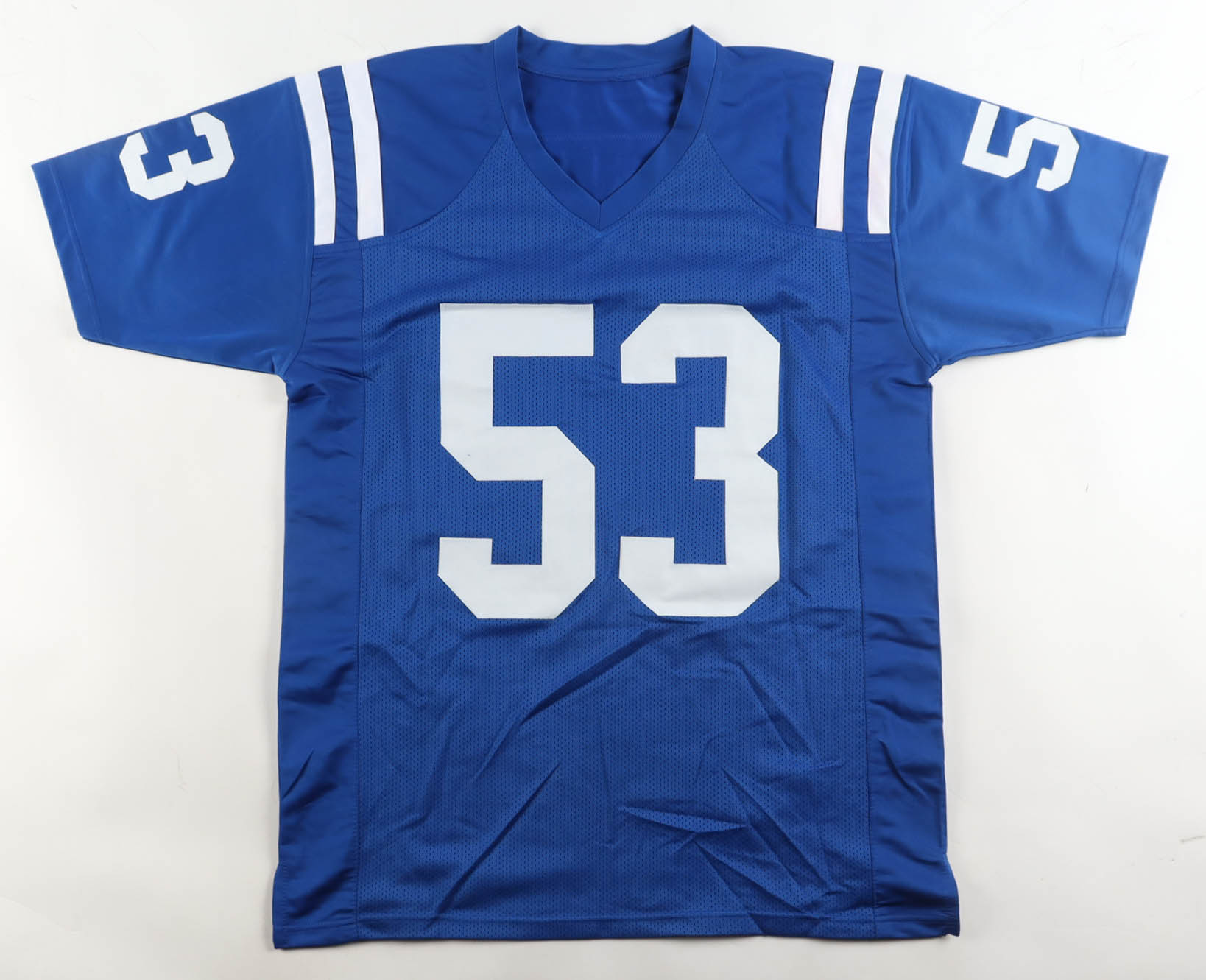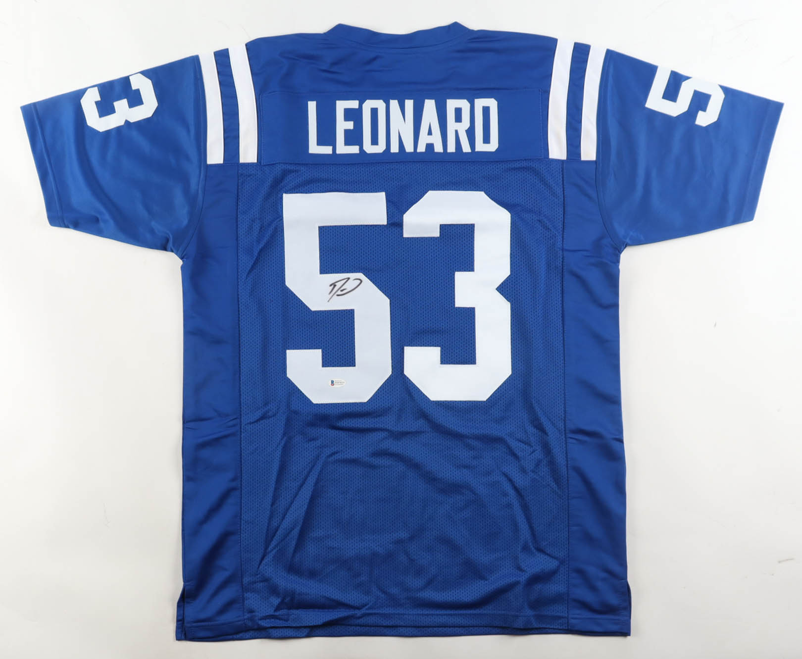 Custom jersey with everything sewn on, size XL. Hand-signed by Darius Leonard.