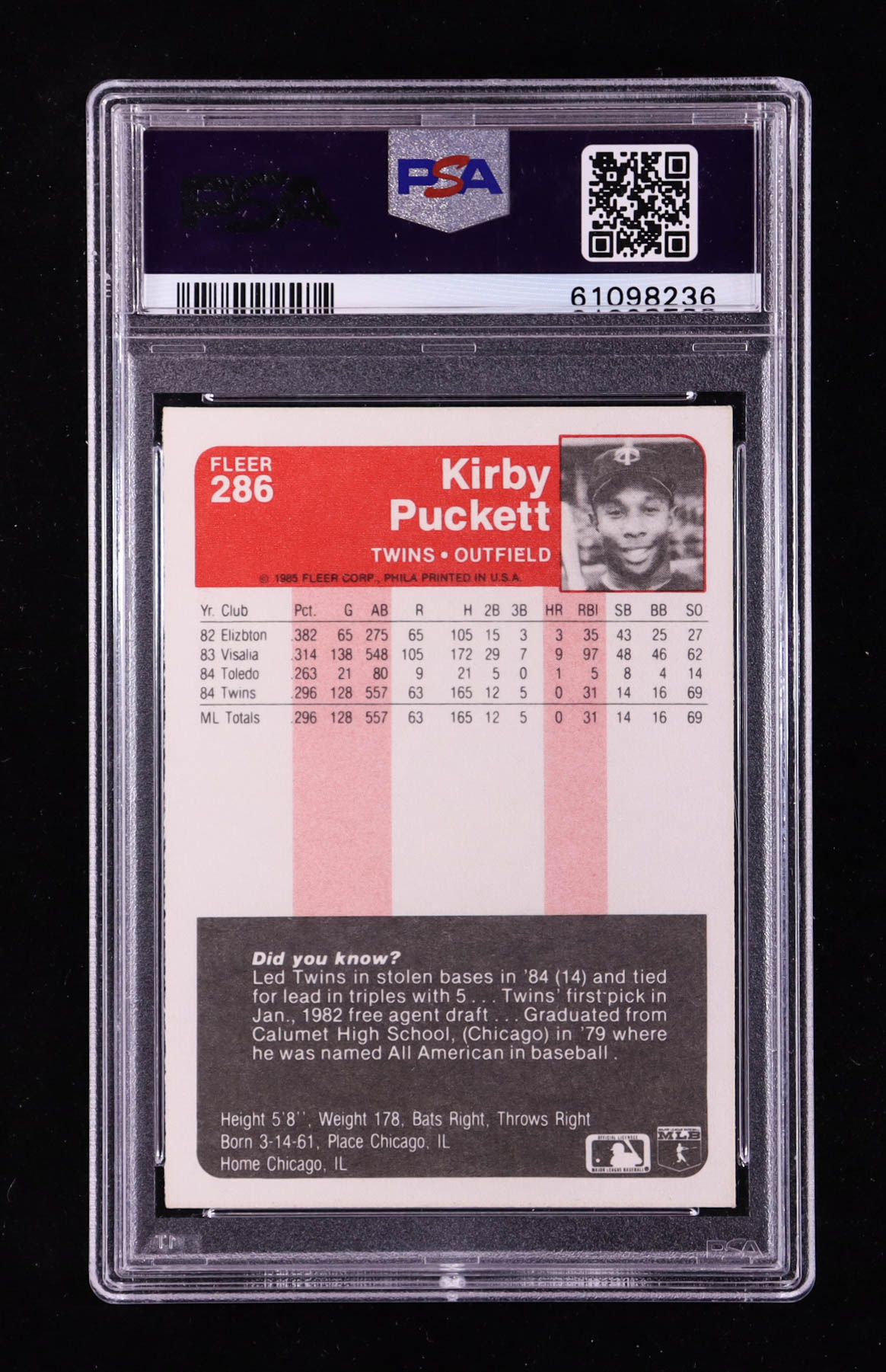 Kirby Puckett 1985 Fleer #286 RC (PSA 9)