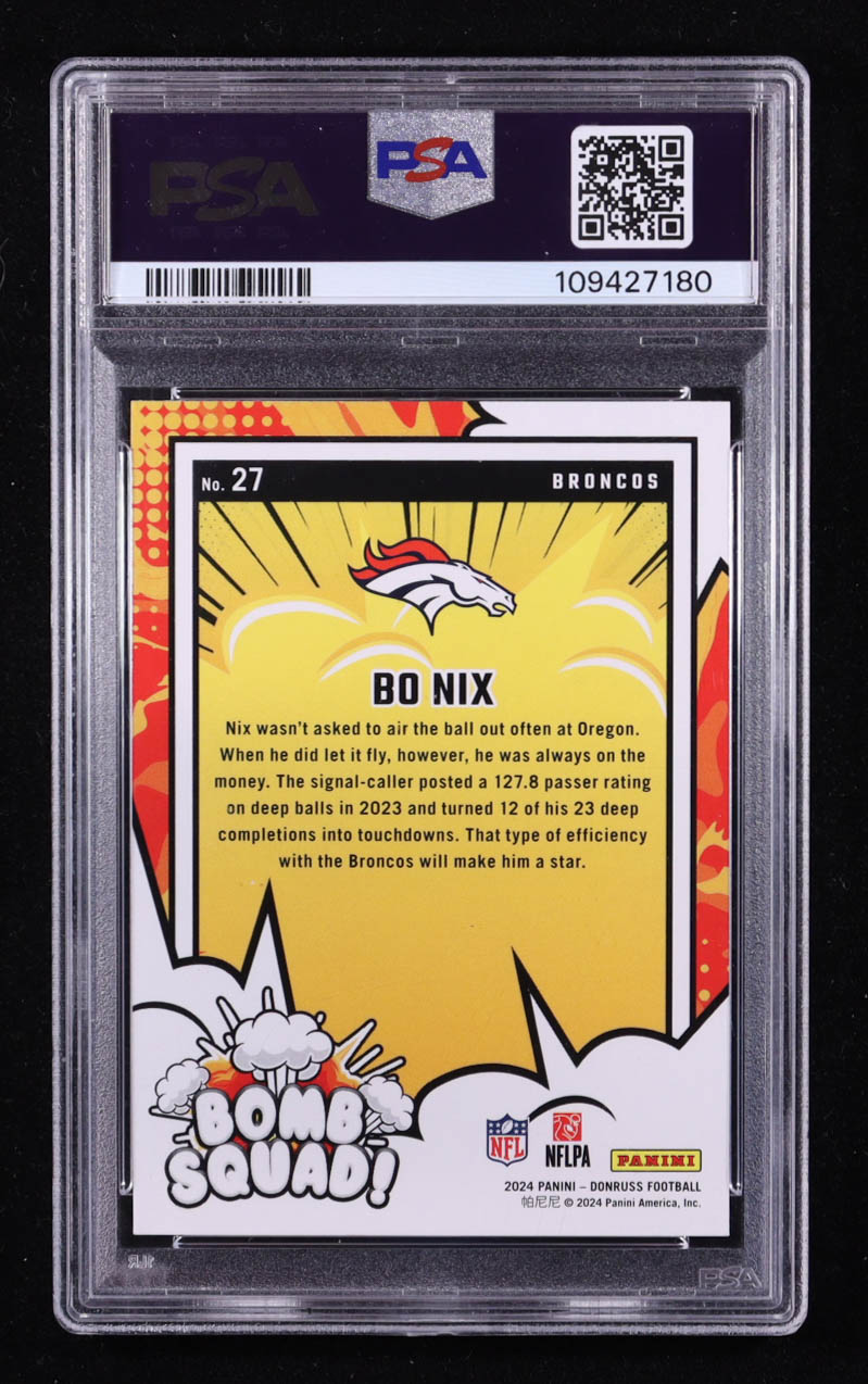 Bo Nix 2024 Donruss Bomb Squad #27 RC (PSA 10)