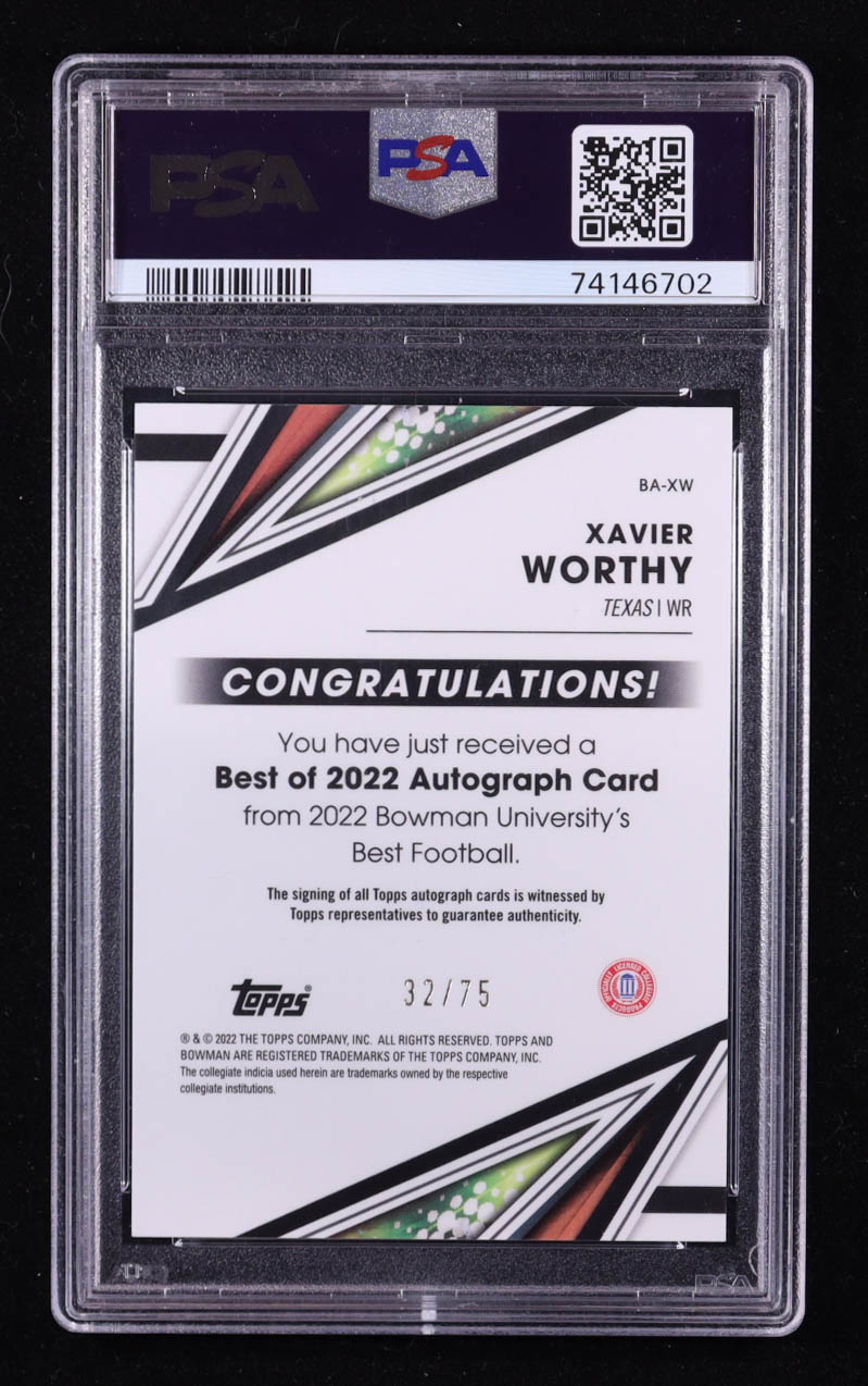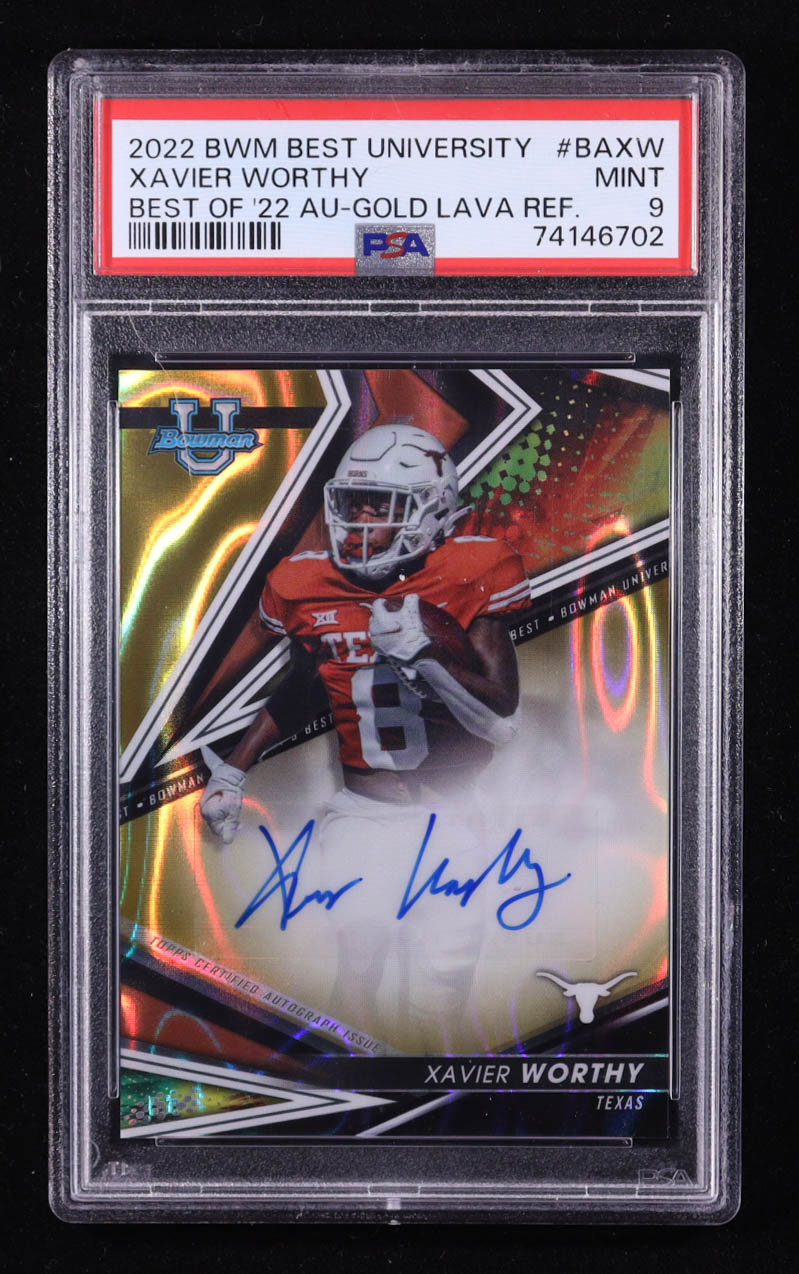 Xavier Worthy 2022 Bowman's Best University Best of '22 Autographs Gold Lava Refractors #BAXW #32/75 RC (PSA 9)