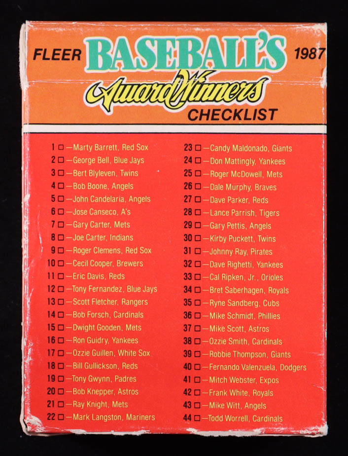 1987 Fleer Baseball's Award Winners Factory Set of (44) Cards
