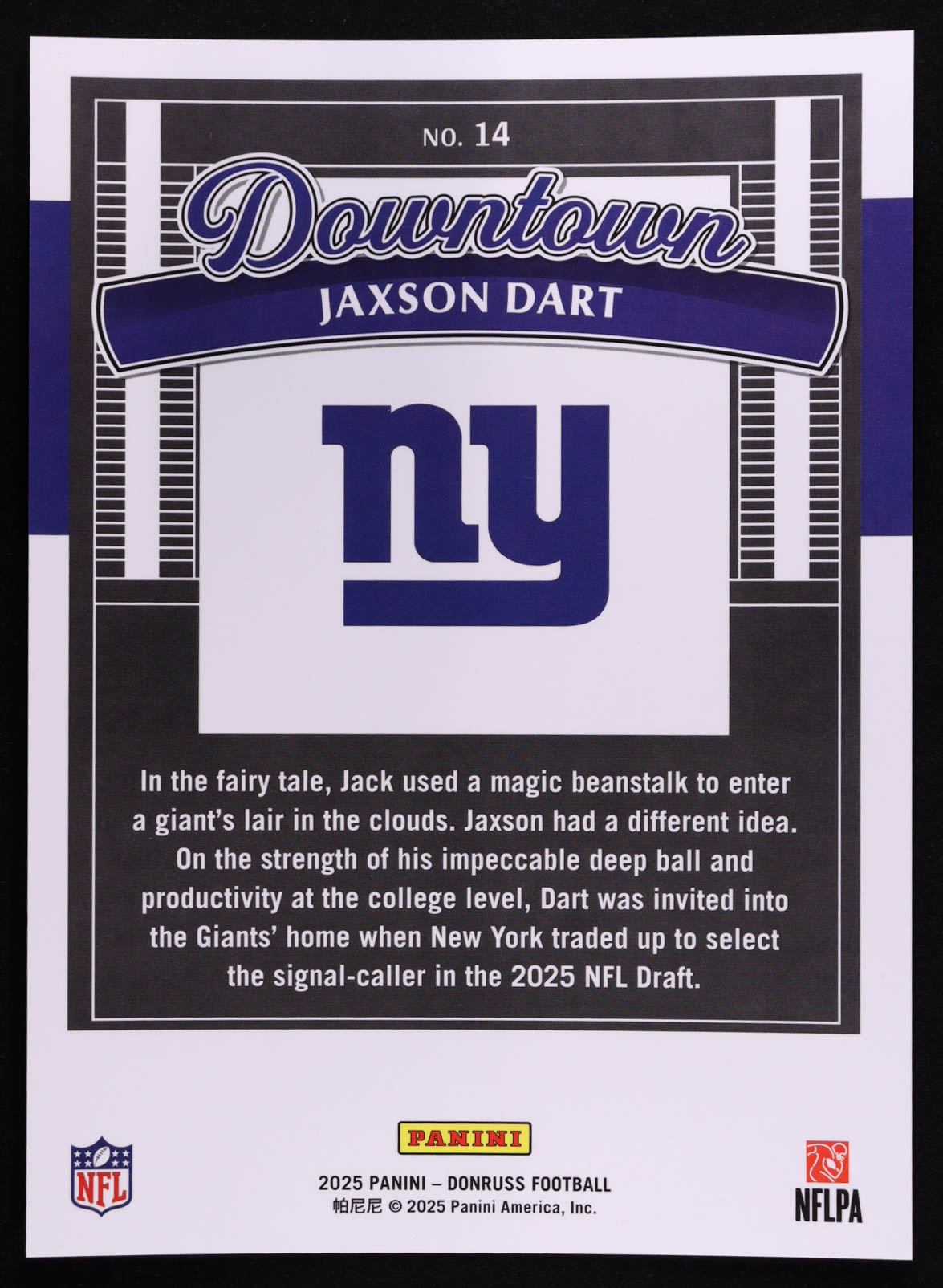 Jaxson Dart 2025 Donruss Downtown! Oversized #14 RC