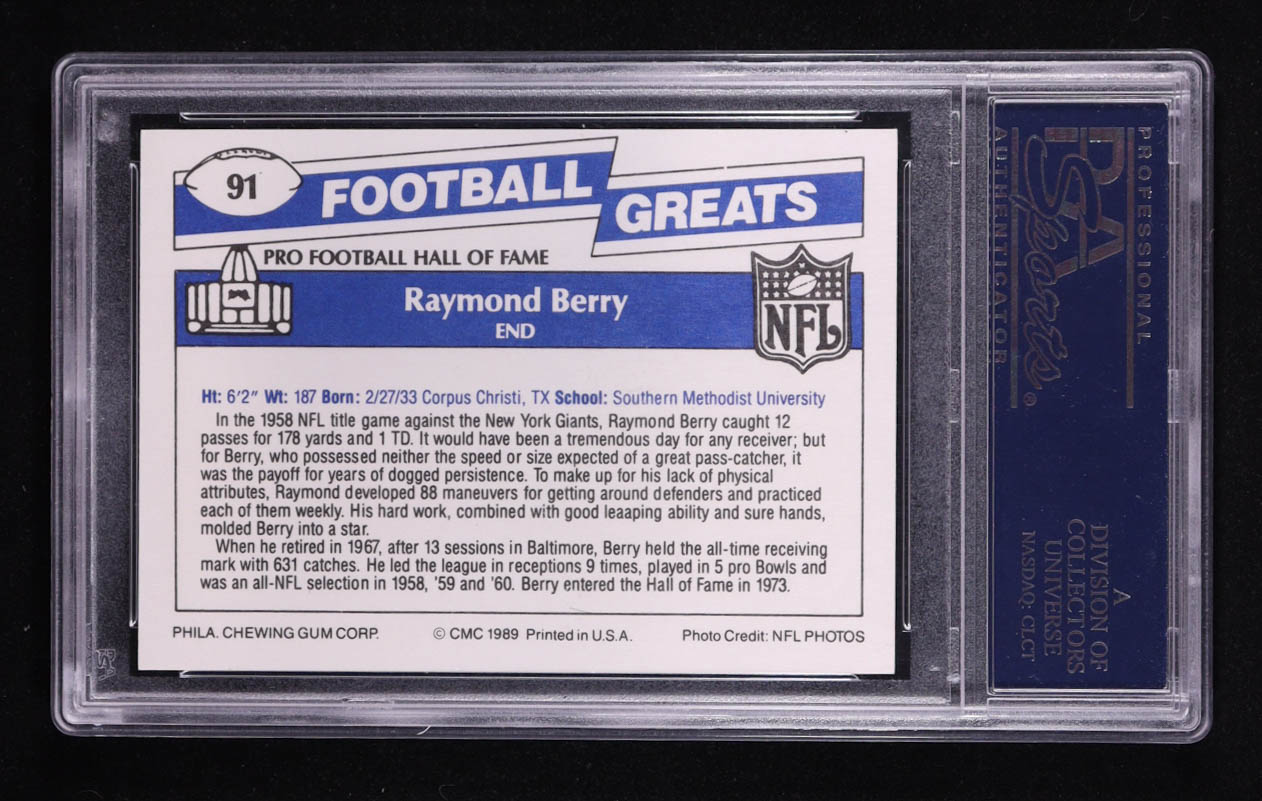 Raymond Berry Signed 1989 Swell Greats #91 (PSA Encapsulated)