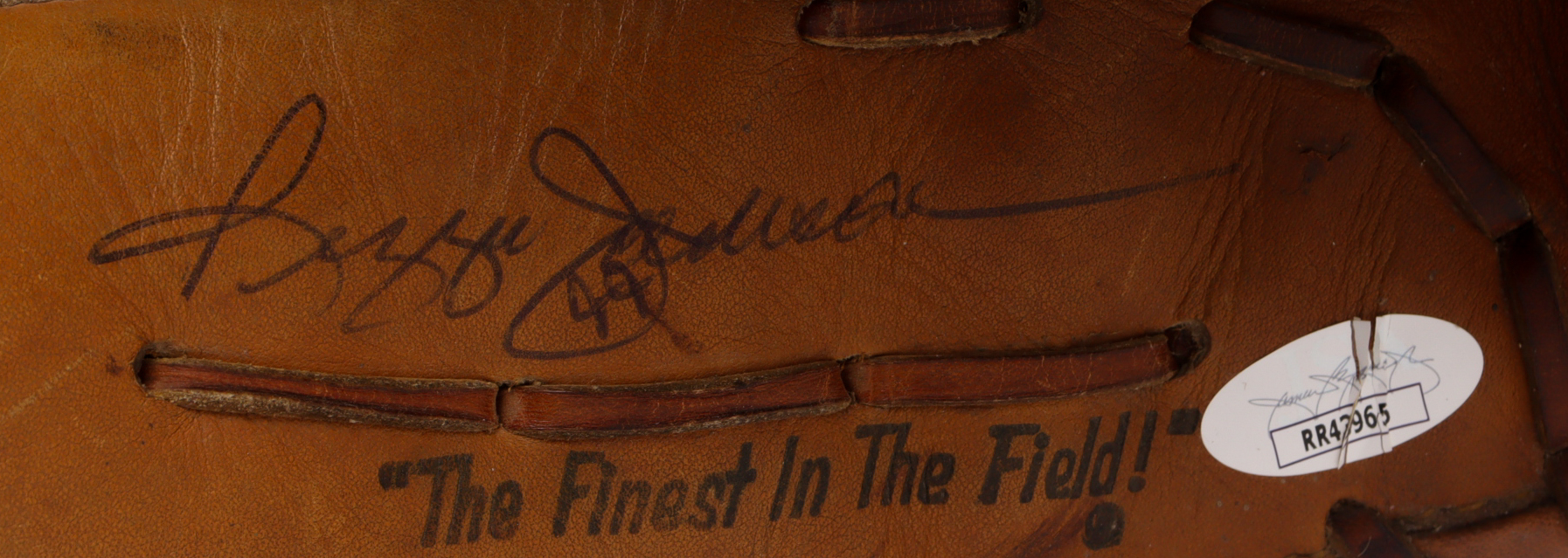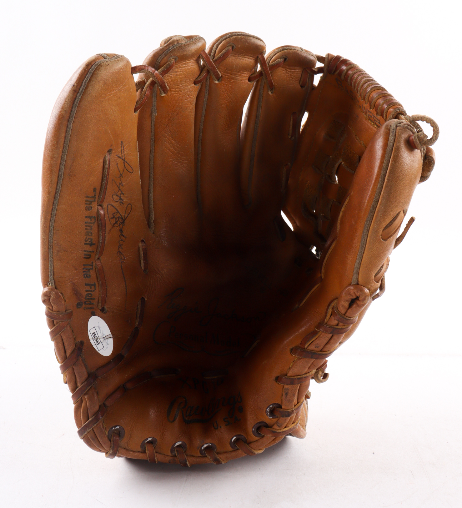 Rawlings Personal Model baseball glove has been hand-signed by Reggie Jackson (New York Yankees, HOF). Please note the signature shown is authentic, the other is facsimile on the glove.