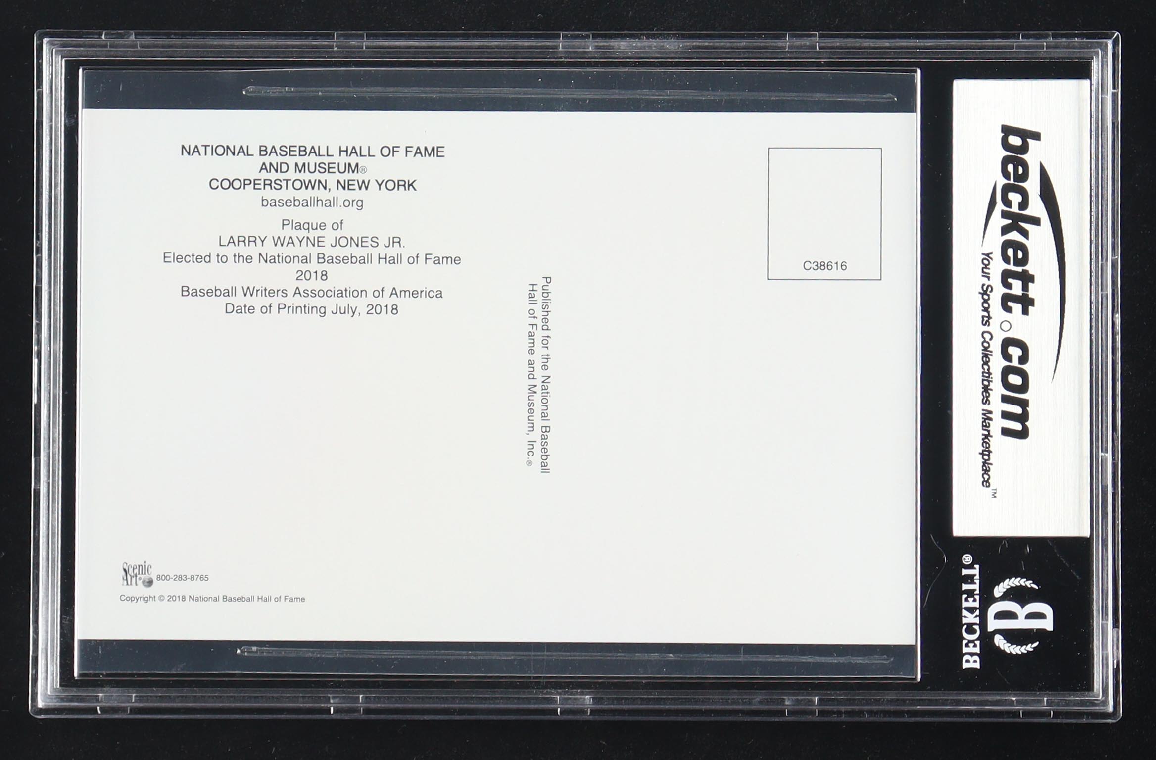 Chipper Jones Signed Hall of Fame Plaque Postcard (BGS Auto 10)