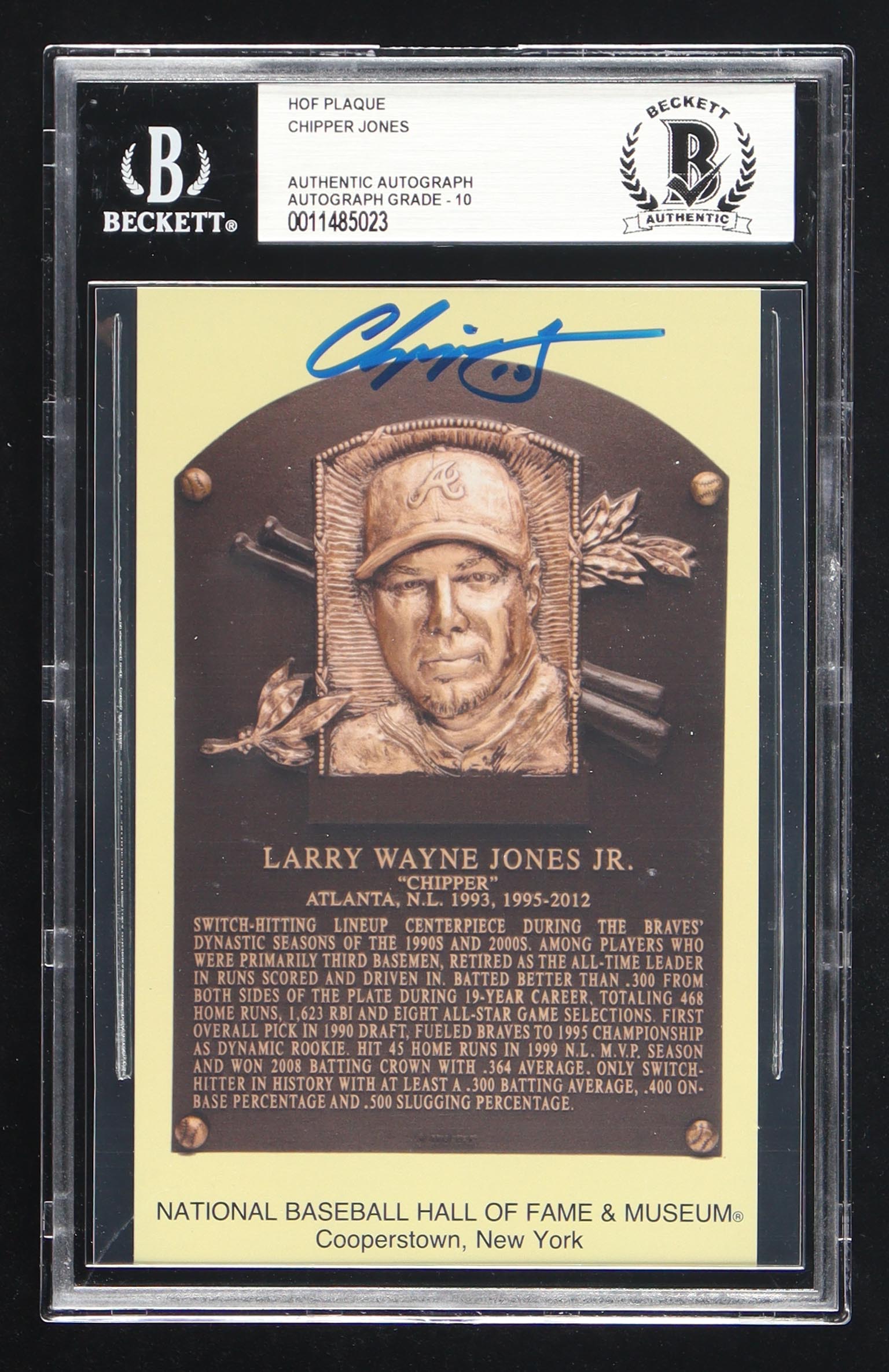 Chipper Jones Signed Hall of Fame Plaque Postcard (BGS Auto 10)