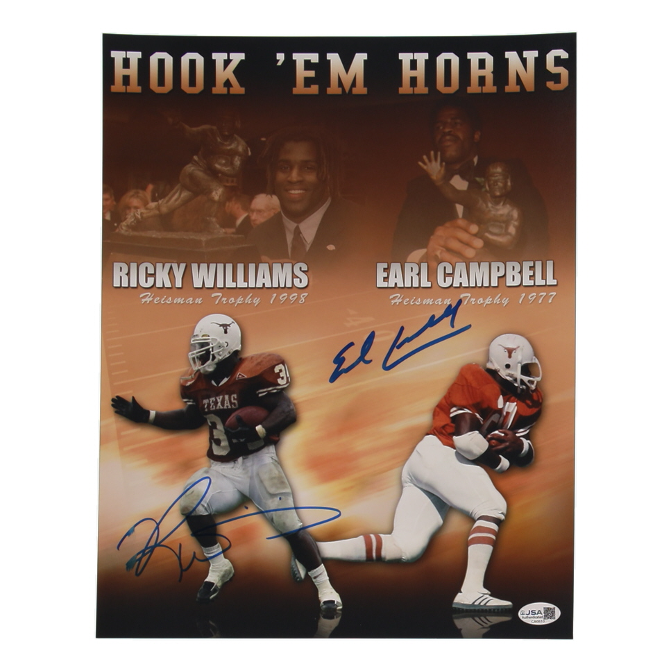 Earl Campbell & Ricky Williams Signed Texas Longhorns 11x14 Photo (JSA)