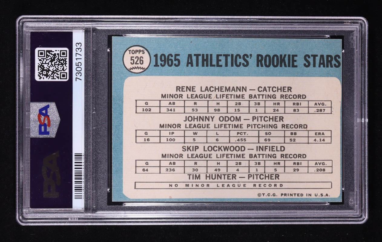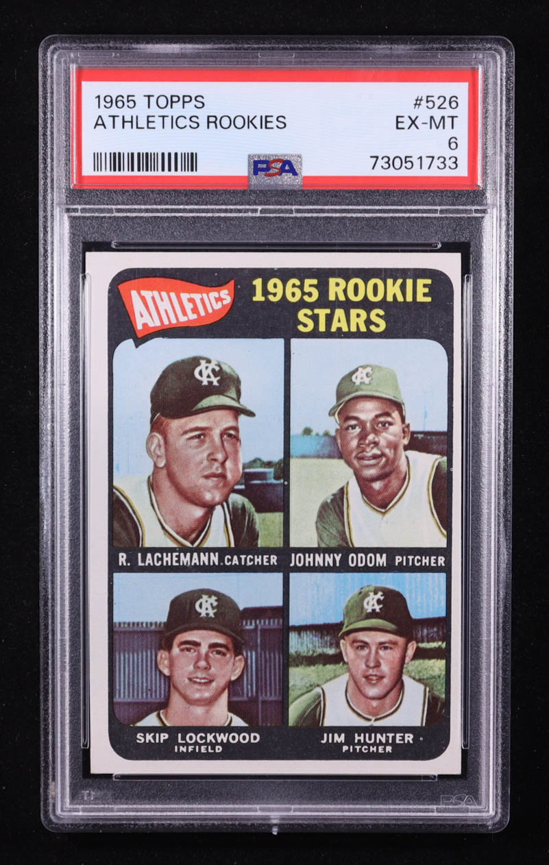 1965 Topps #526 Rookie Stars Rene Lachemann / Johnny Odom / Jim Hunter / Skip Lockwood RC (PSA 6)