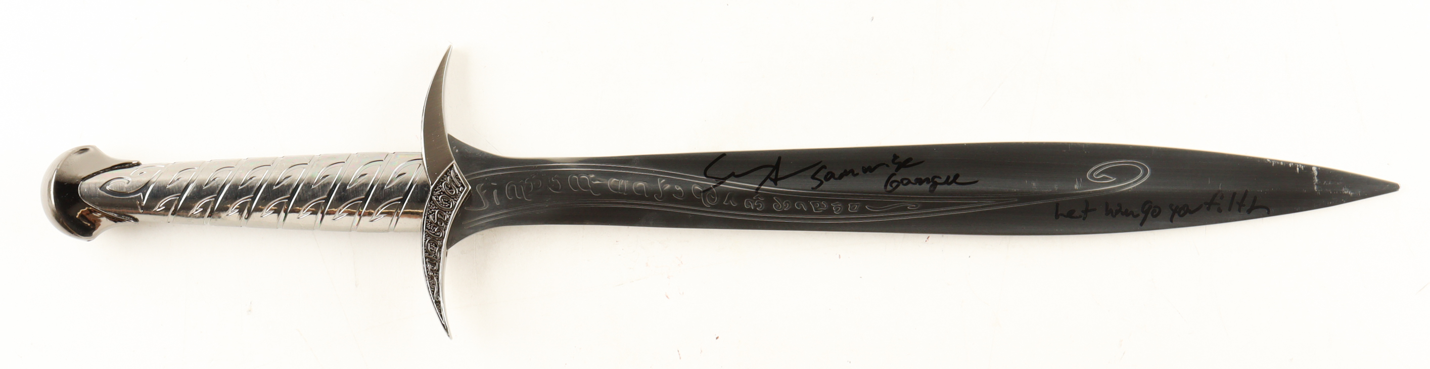 Sword Prop Replica measures approximately 22" in length and has been hand-signed and inscribed by Sean Astin (Samwise Gamgee). Please see photos for more details.