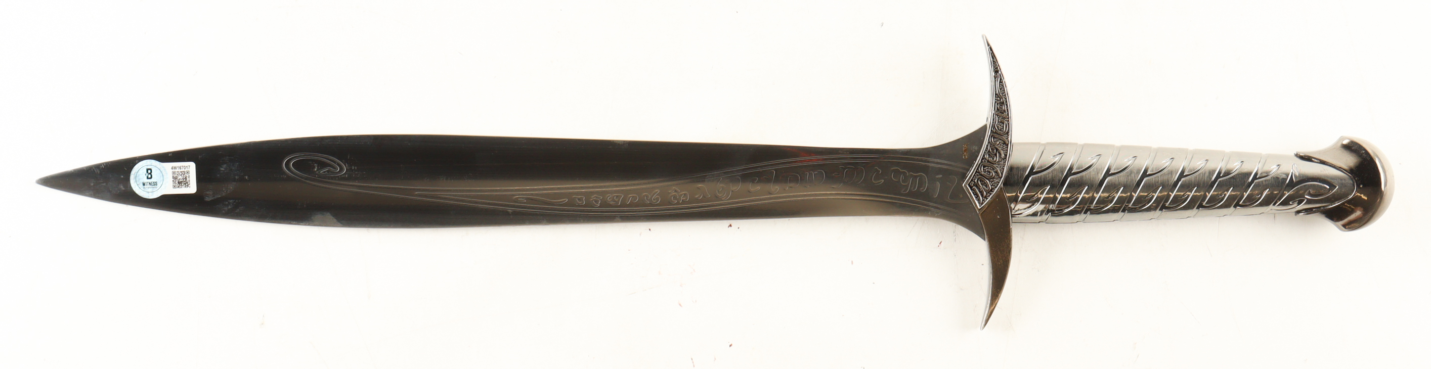 Sword Prop Replica measures approximately 22" in length and has been hand-signed and inscribed by Elijah Wood (Frodo Baggins). See photos for more details.