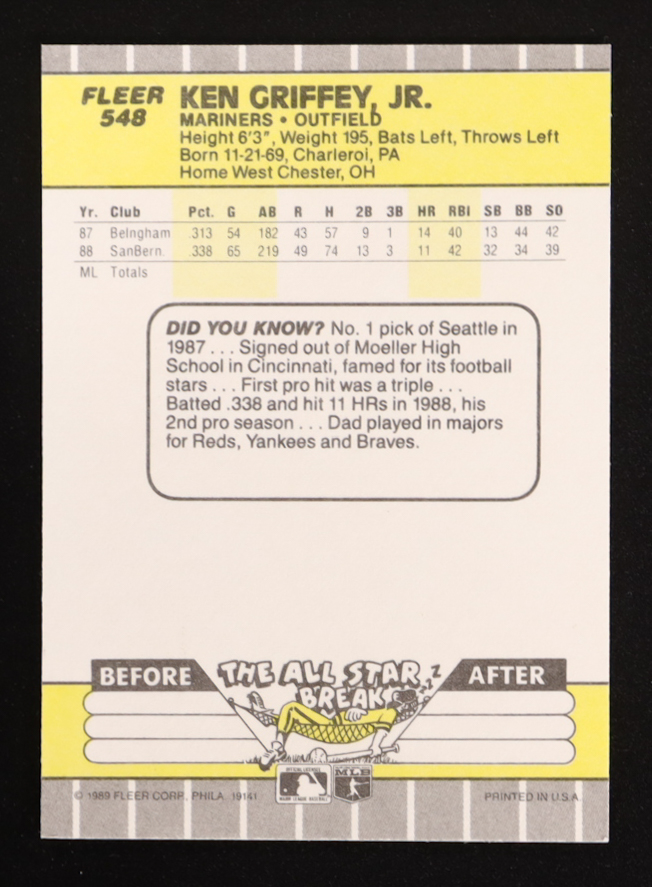 Ken Griffey Jr. 1989 Fleer #548 RC