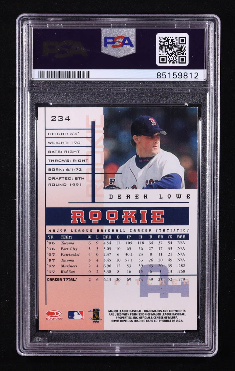 Derek Lowe Signed 1998 Leaf Rookies and Stars #234 RC (PSA Encapsulated)