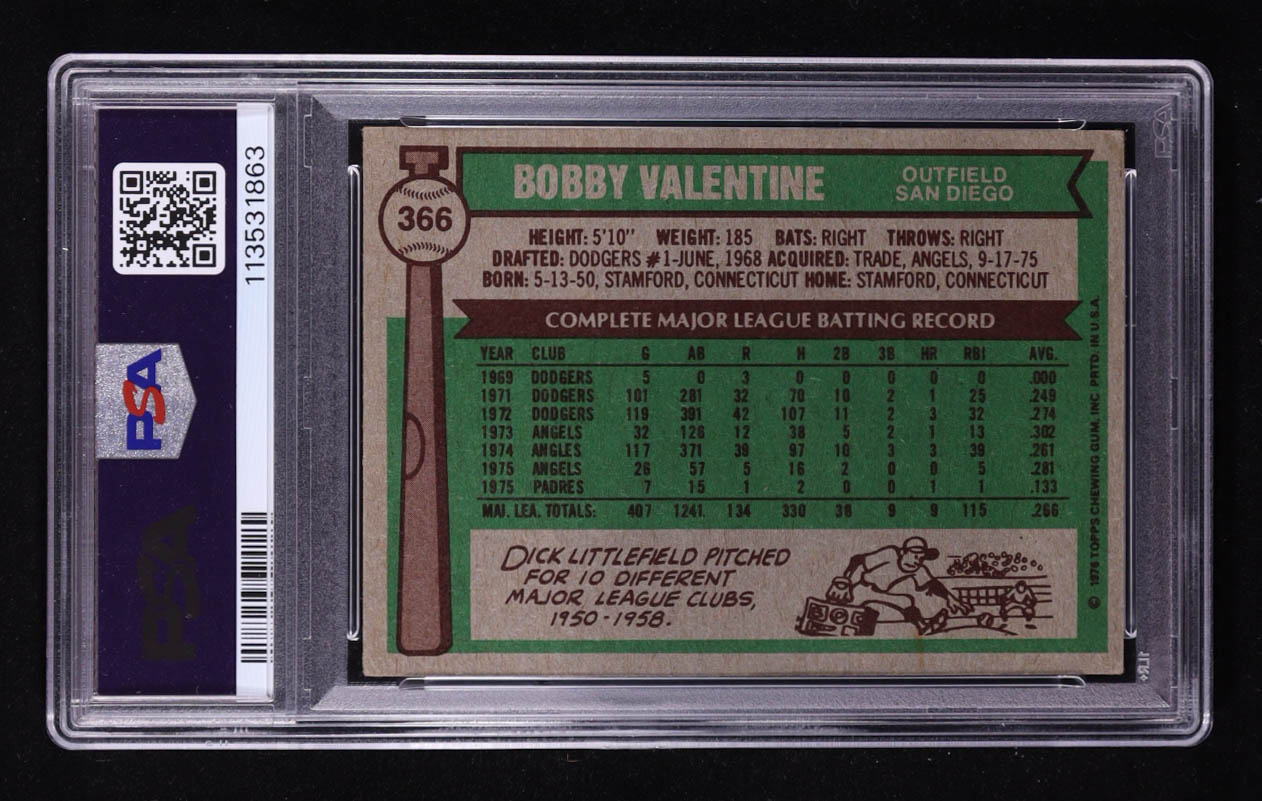 Bobby Valentine Signed 1976 Topps #366 (PSA 1.5)