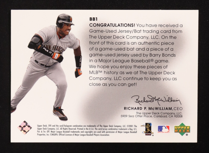 Barry Bonds 2001 SPx Winning Materials Bat-Jersey AS #BB1