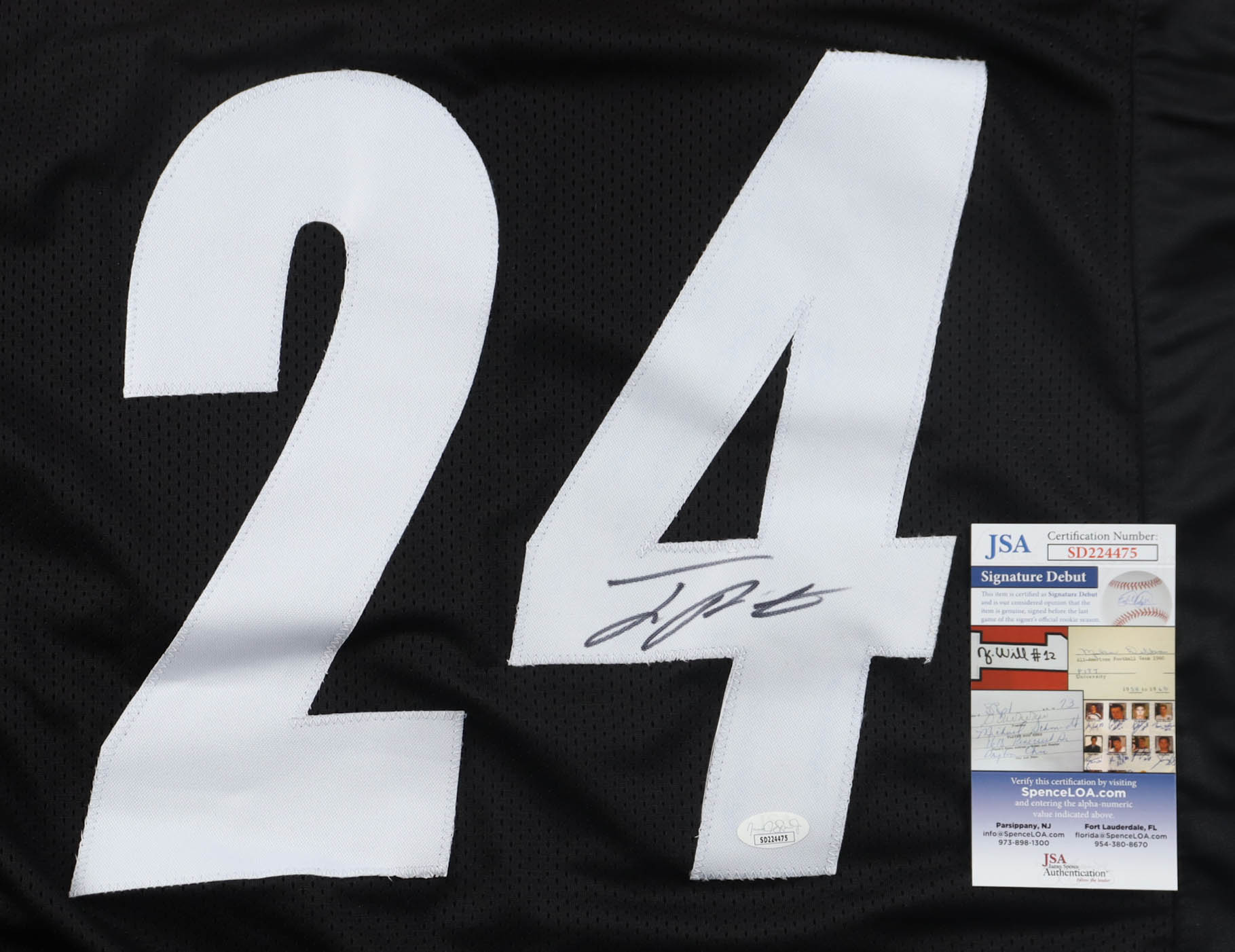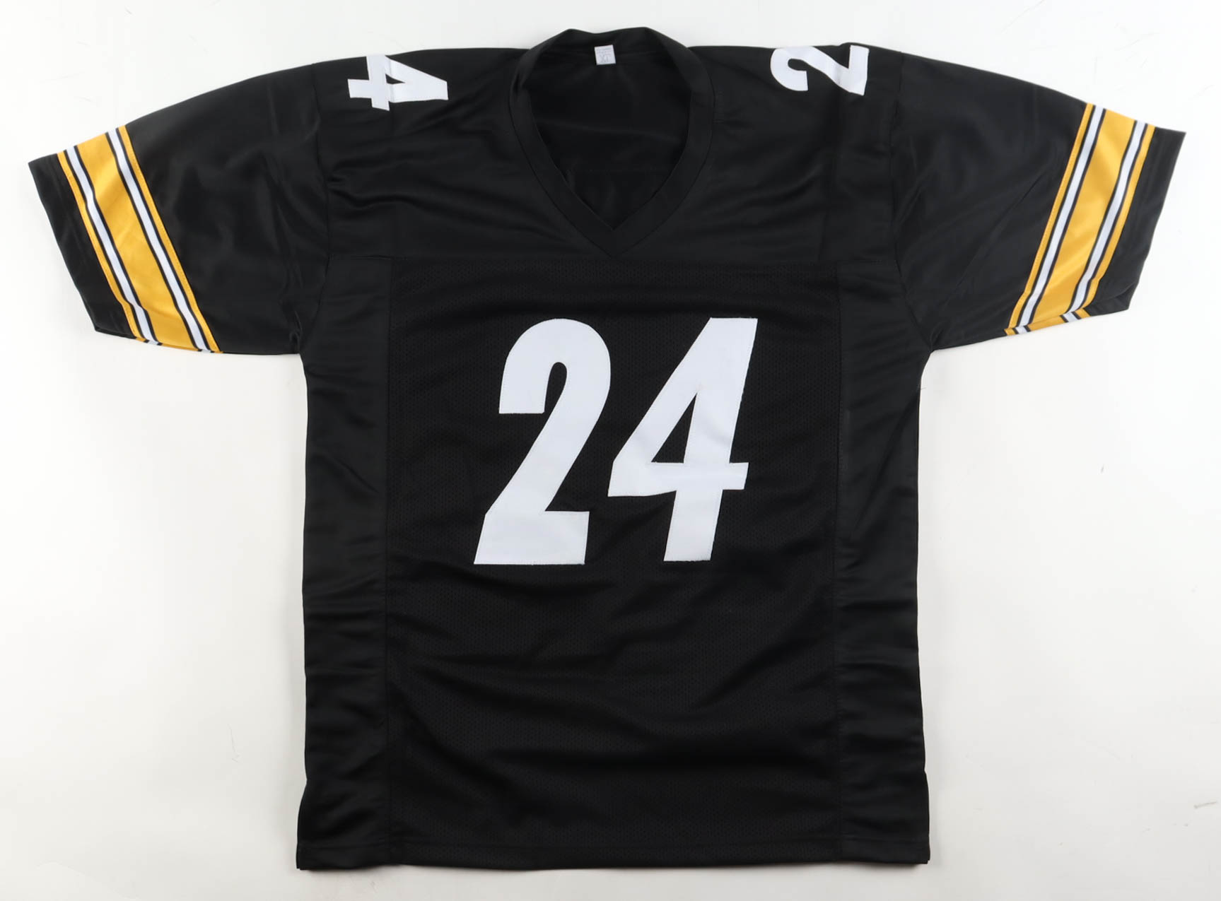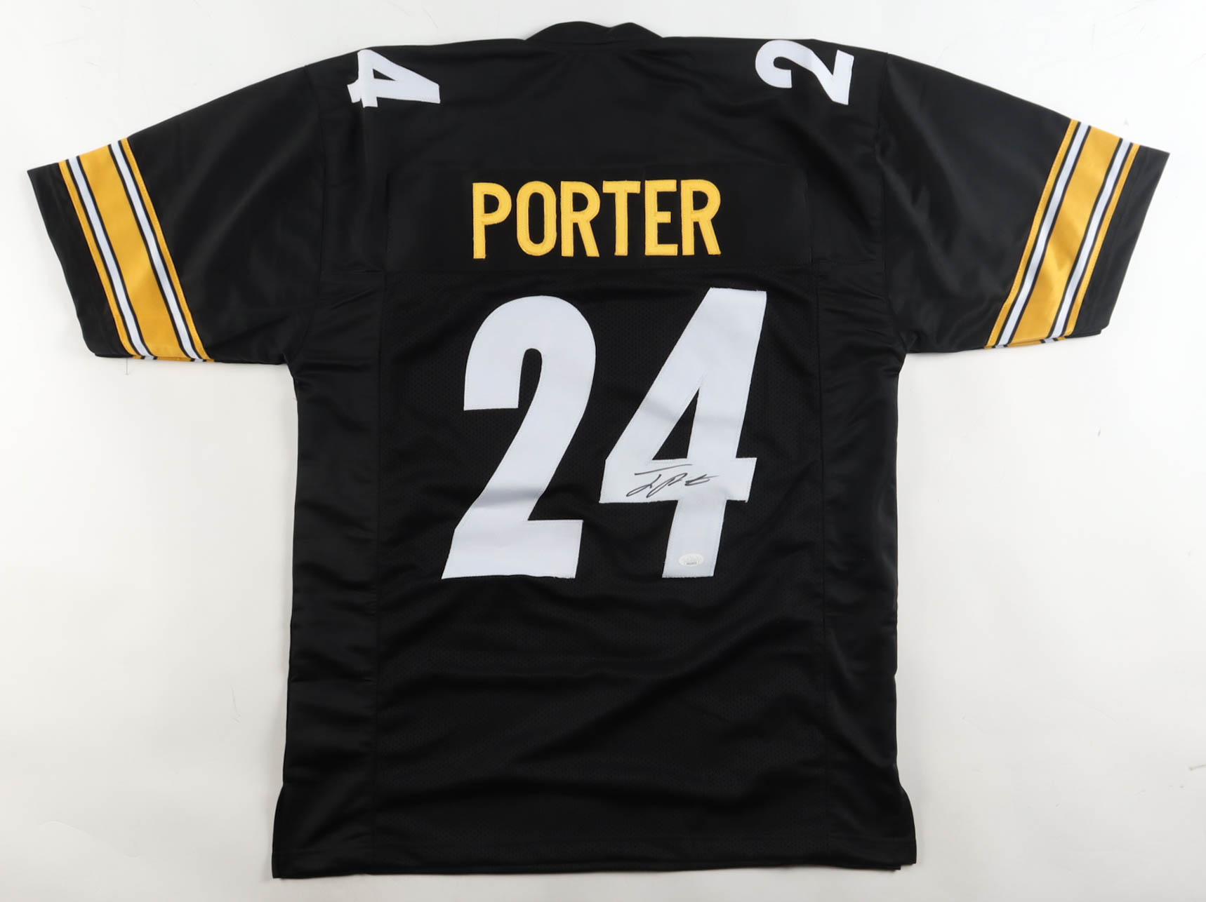 Custom jersey with everything sewn on, size XL. Hand-signed by Joey Porter Jr. Please note, glue is visible through the reverse number.