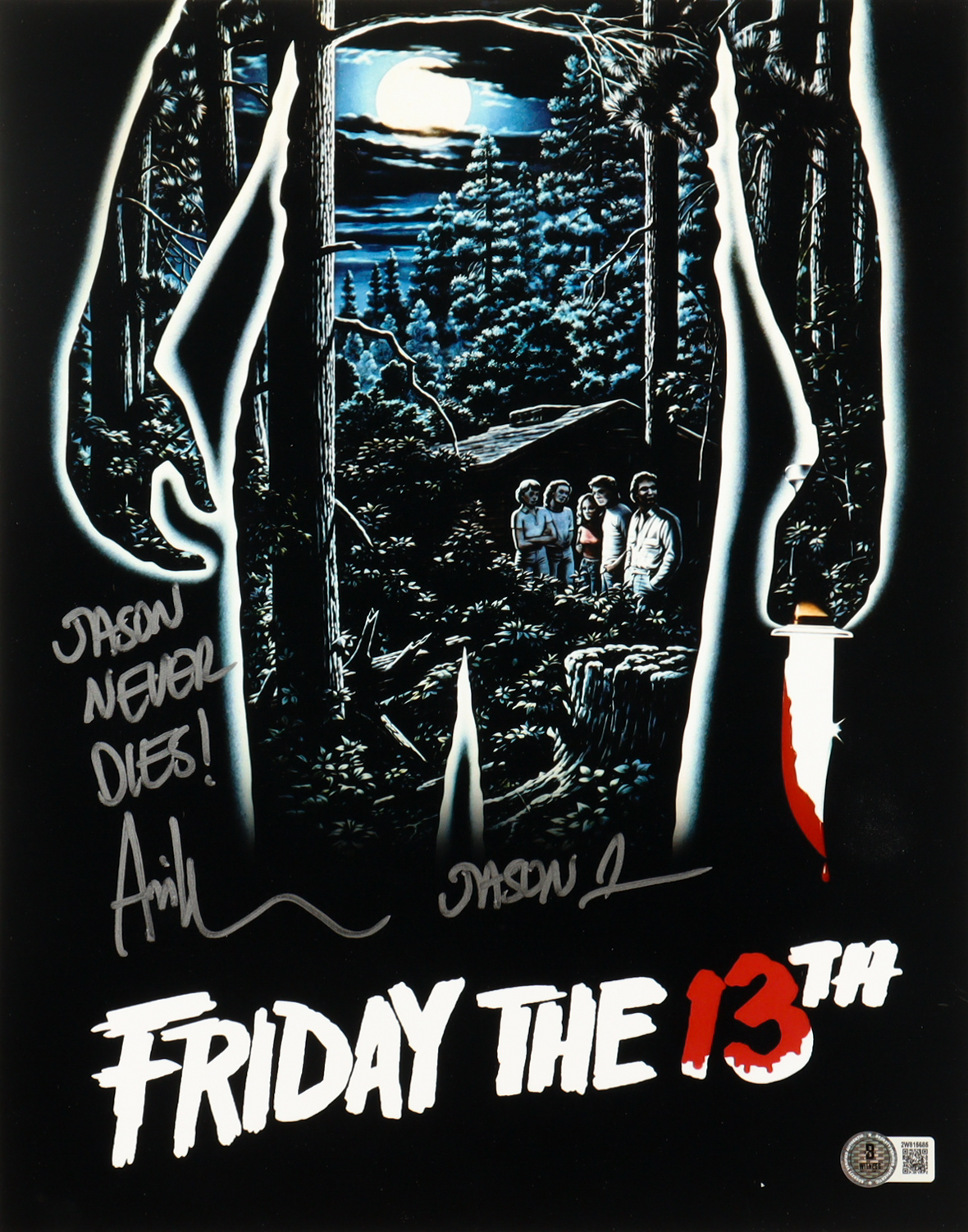 Photo measures approximately 11" x 14" in size and has been hand-signed and inscribed by Ari Lehman (Jason Voorhees).