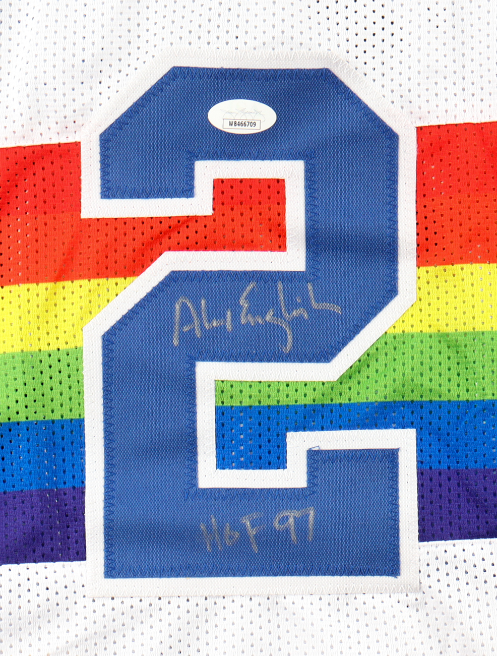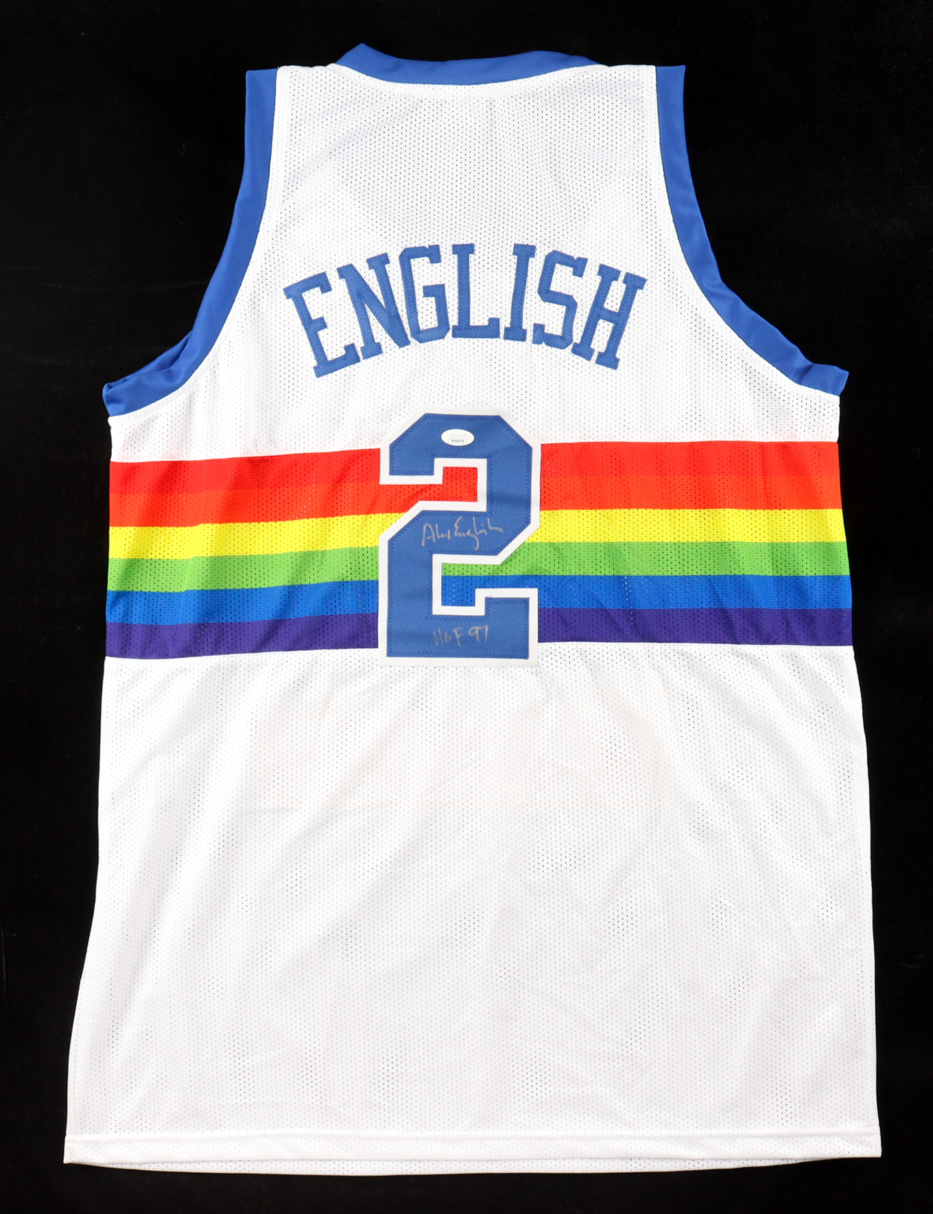 Alex English Signed Jersey Inscribed "HOF 97" (JSA)