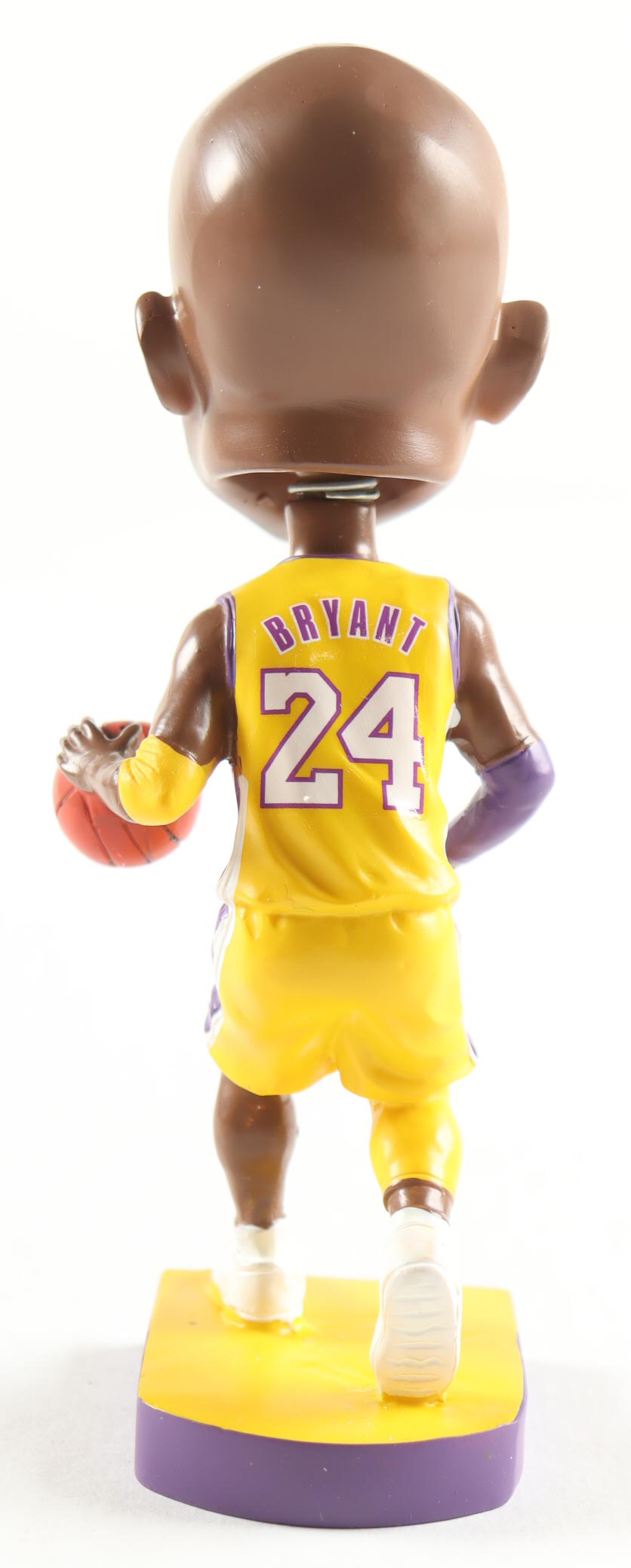 Kobe Bryant Los Angeles Lakers bobblehead figure measures approximately 7" in height. The display stand is included as shown. Please see photos for more details regarding the condition of the bobblehead. Please note, item is unsigned.