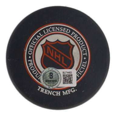 Chicago Blackhawks logo hockey puck. Hand-signed by Bobby Hull (D. 2023, HOF).