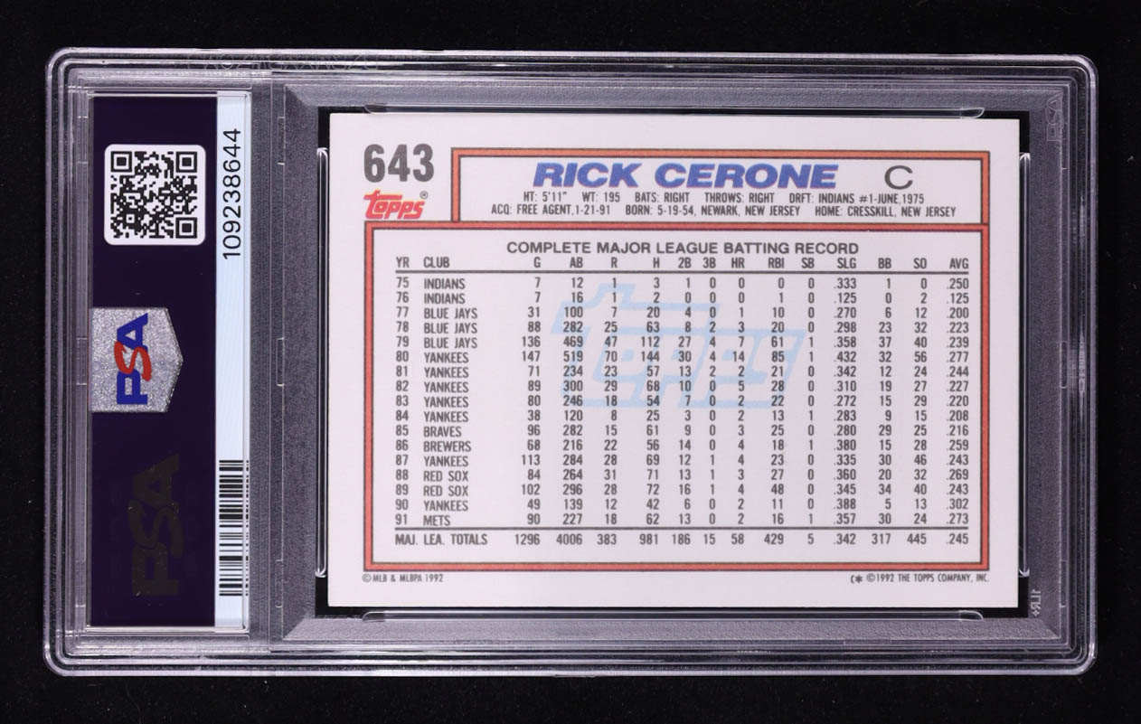 Rick Cerone 1992 Topps #643 (PSA 7)