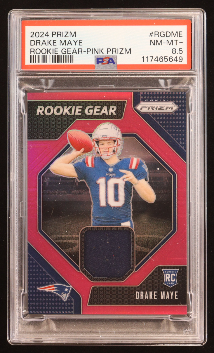 Drake Maye 2024 Panini Prizm Rookie Gear Pink #RG-DME RC (PSA 8.5)