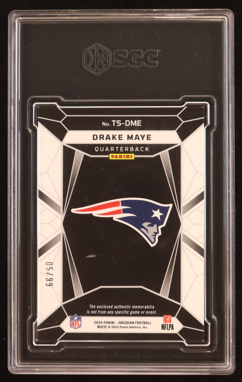 Drake Maye 2024 Panini Obsidian Trifecta Material Silver #TS-DME RC #05/99 (SGC 8.5)