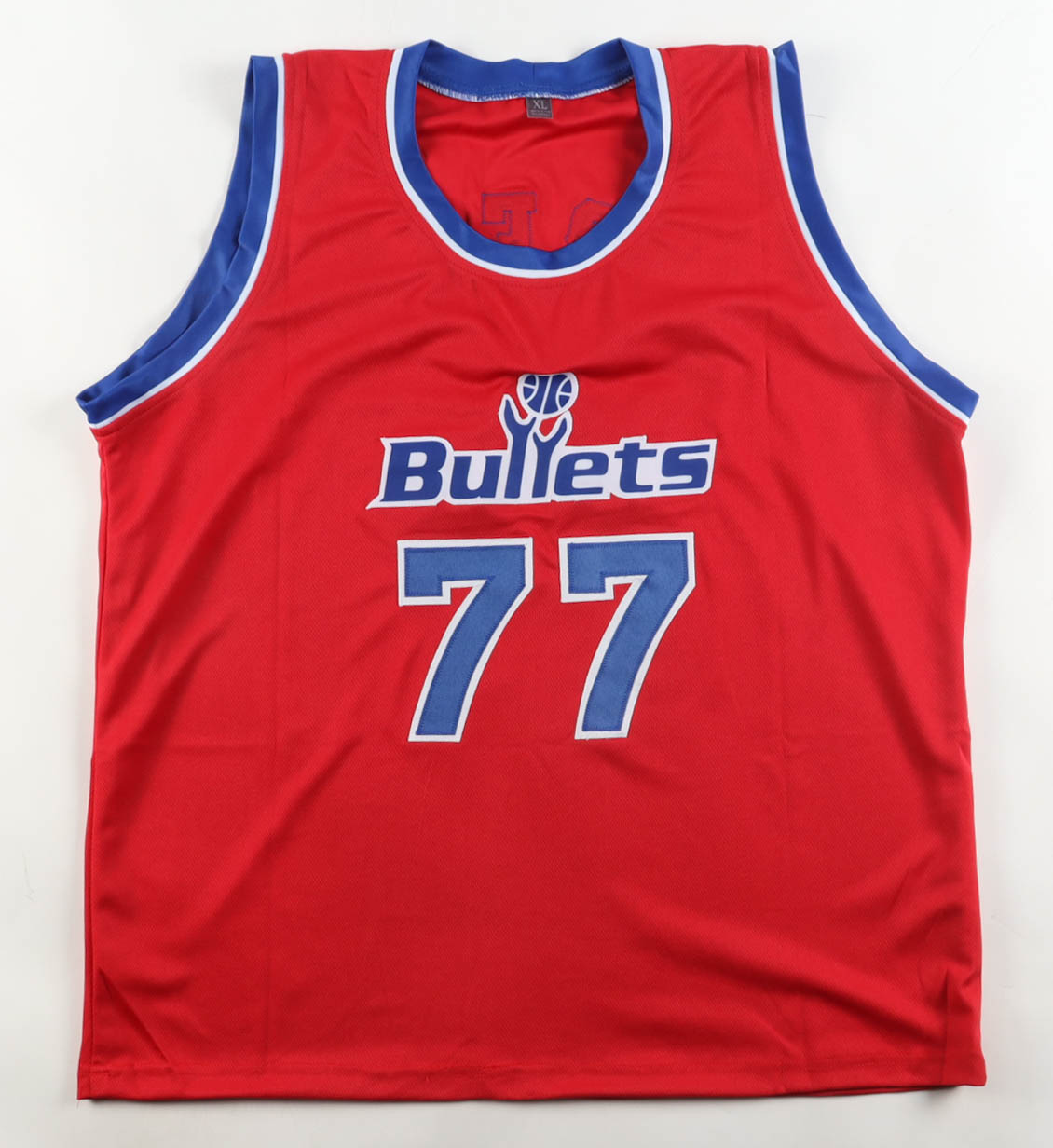Custom jersey with everything sewn on, size XL. Has been hand-signed by Gheorghe Muresan.