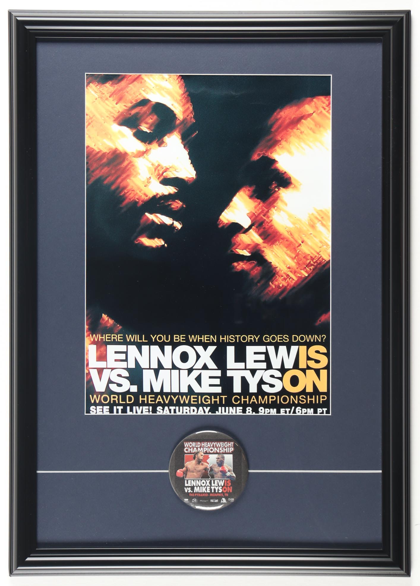 Mike Tyson vs Lennox Lewis Custom Framed Print Display with Original Fight Pin