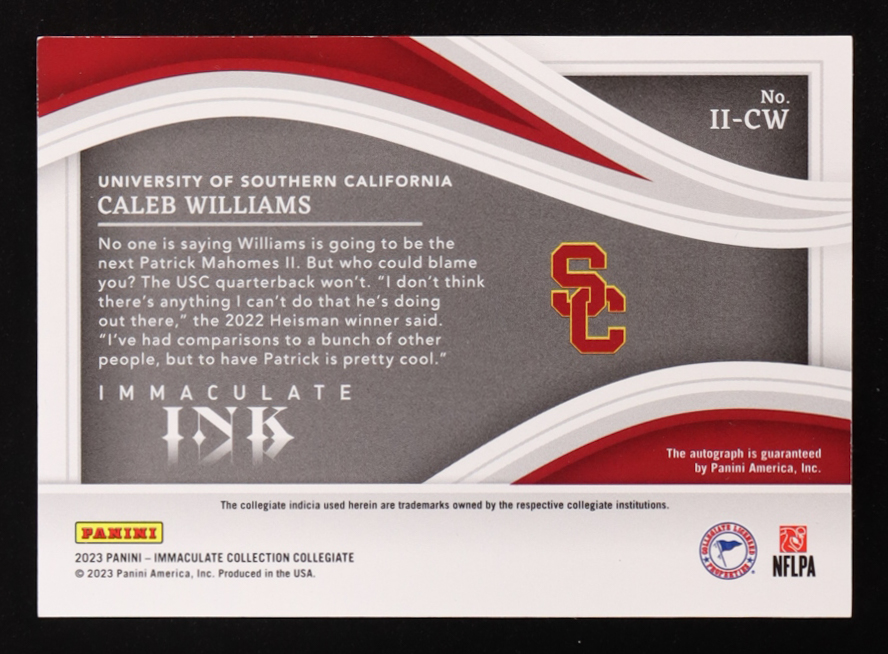Caleb Williams 2023 Immaculate Collection Collegiate Immaculate Ink Ruby #40 #31/75 RC