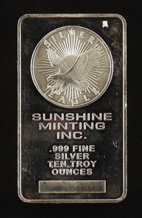 10 Troy Oz Sunshine Minting .999 Fine Silver Bullion Bar