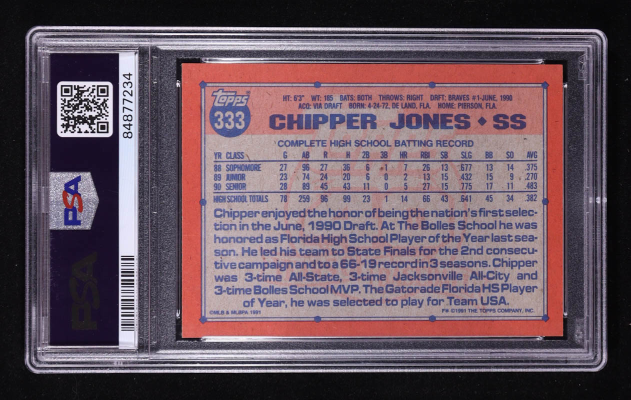 Chipper Jones Signed 1991 Topps #333 RC (PSA 9)