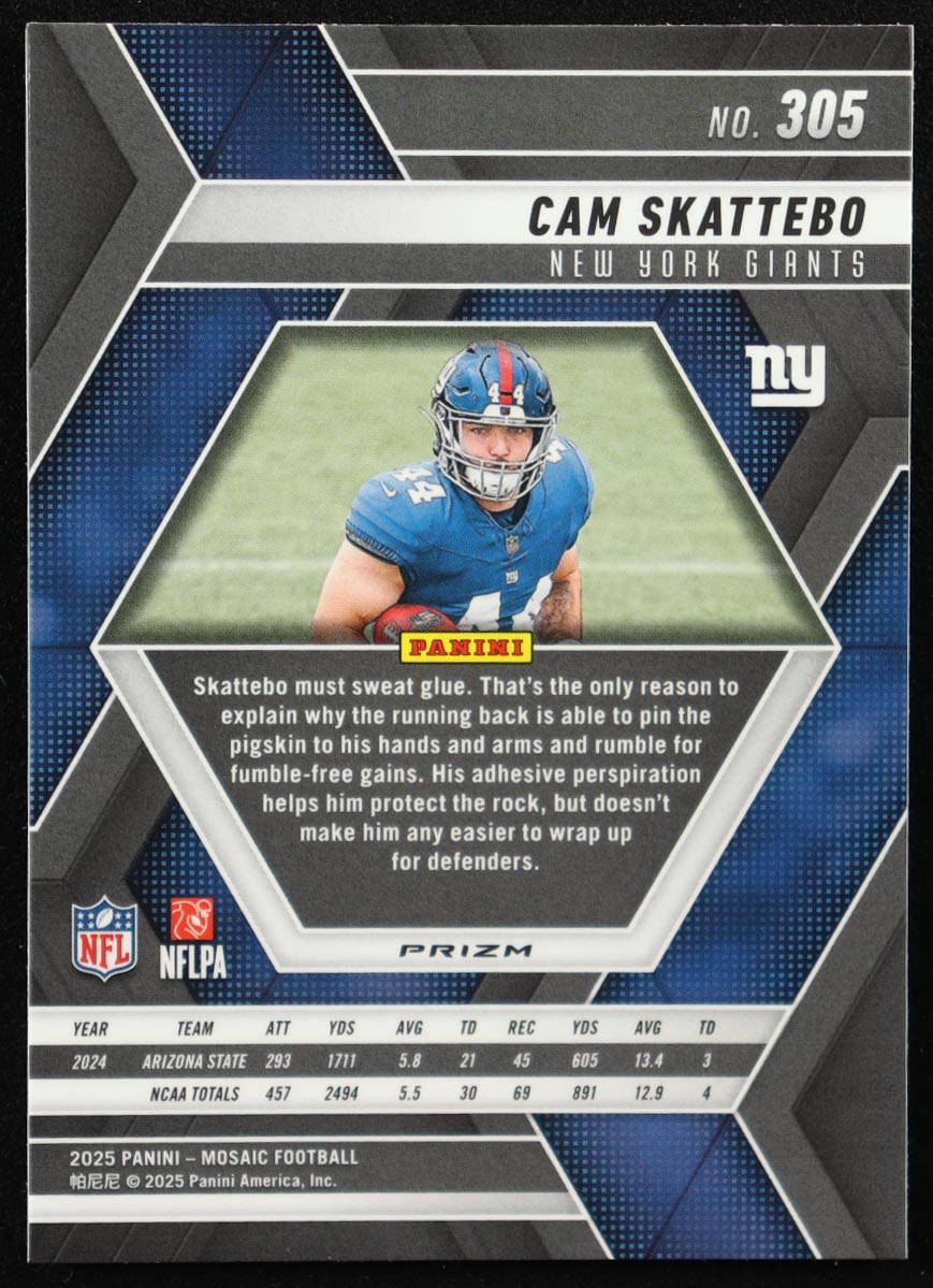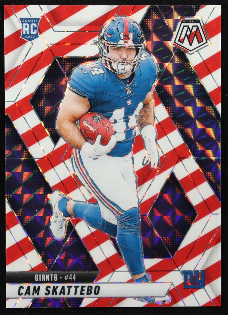 Cam Skattebo 2025 Panini Mosaic Mosaic Red and White Stripe #305 RC