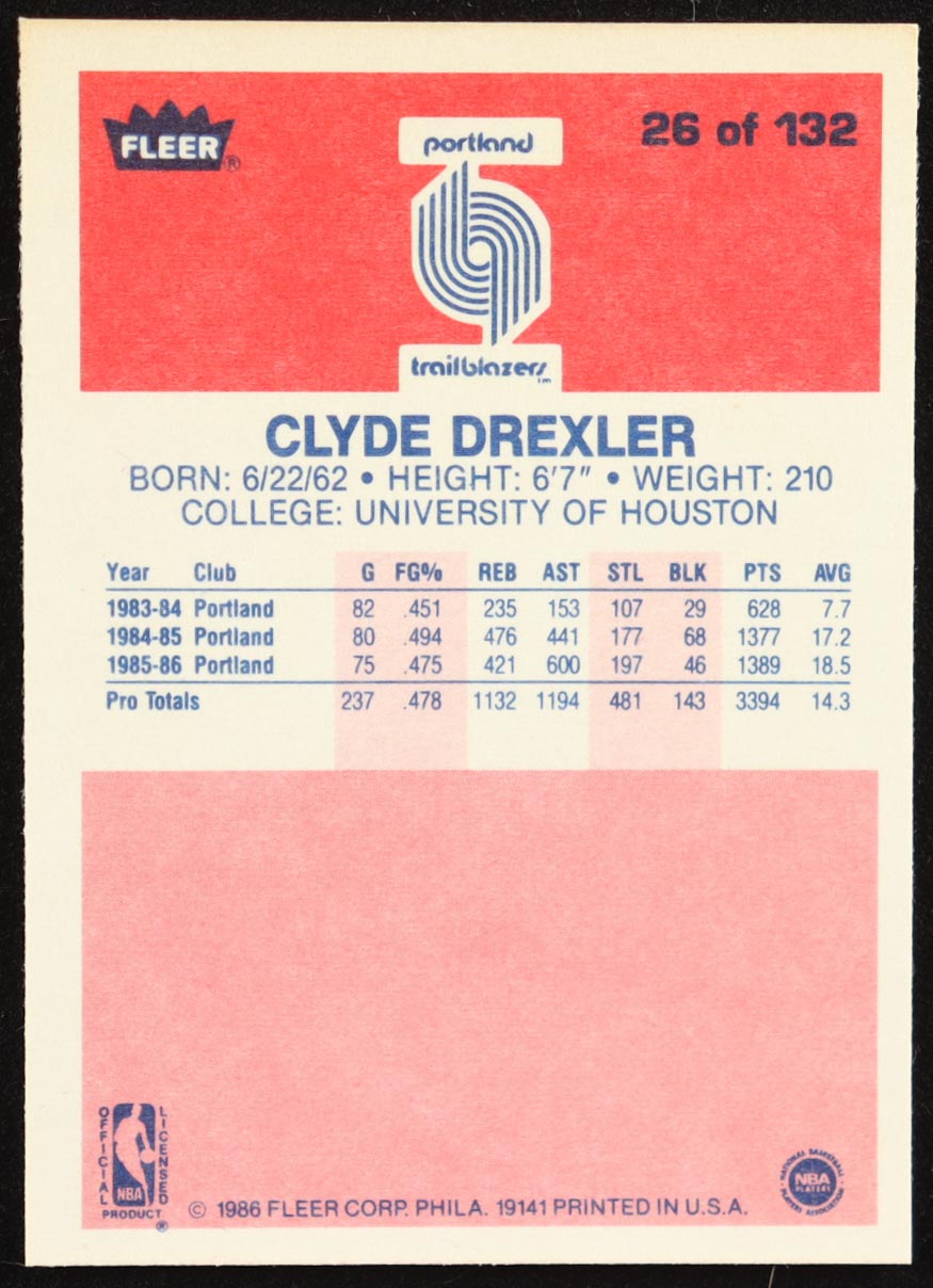 Clyde Drexler 1986-87 Fleer #26 RC