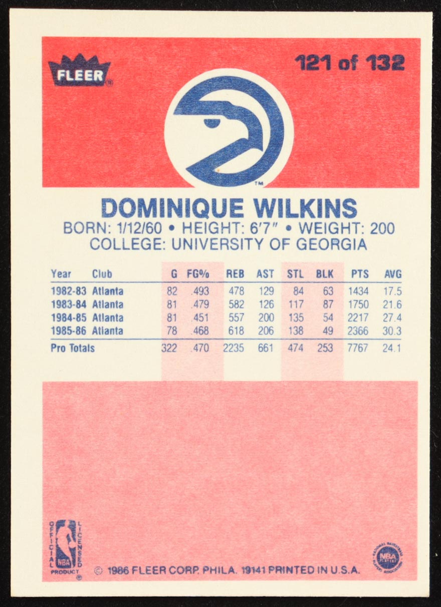 Dominique Wilkins 1986-87 Fleer #121/132 RC