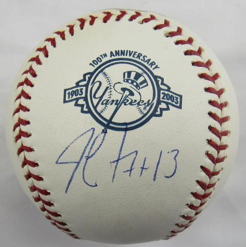 Rawlings Official Major League New York Yankees logo baseball has been hand-signed by Jim Leyritz.