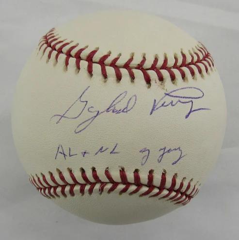 Rawlings Official Major League baseball. Hand-signed and inscribed by Gaylord Perry (D. 2022, San Francisco Giants, HOF). Please note, ball is naturally toned and stained throughout.