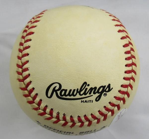 Rawlings Official National League Baseball. Hand-signed by Eddie Mathews (D. 2001, Atlanta Braves, HOF). Please note, there are stains throughout the baseball.