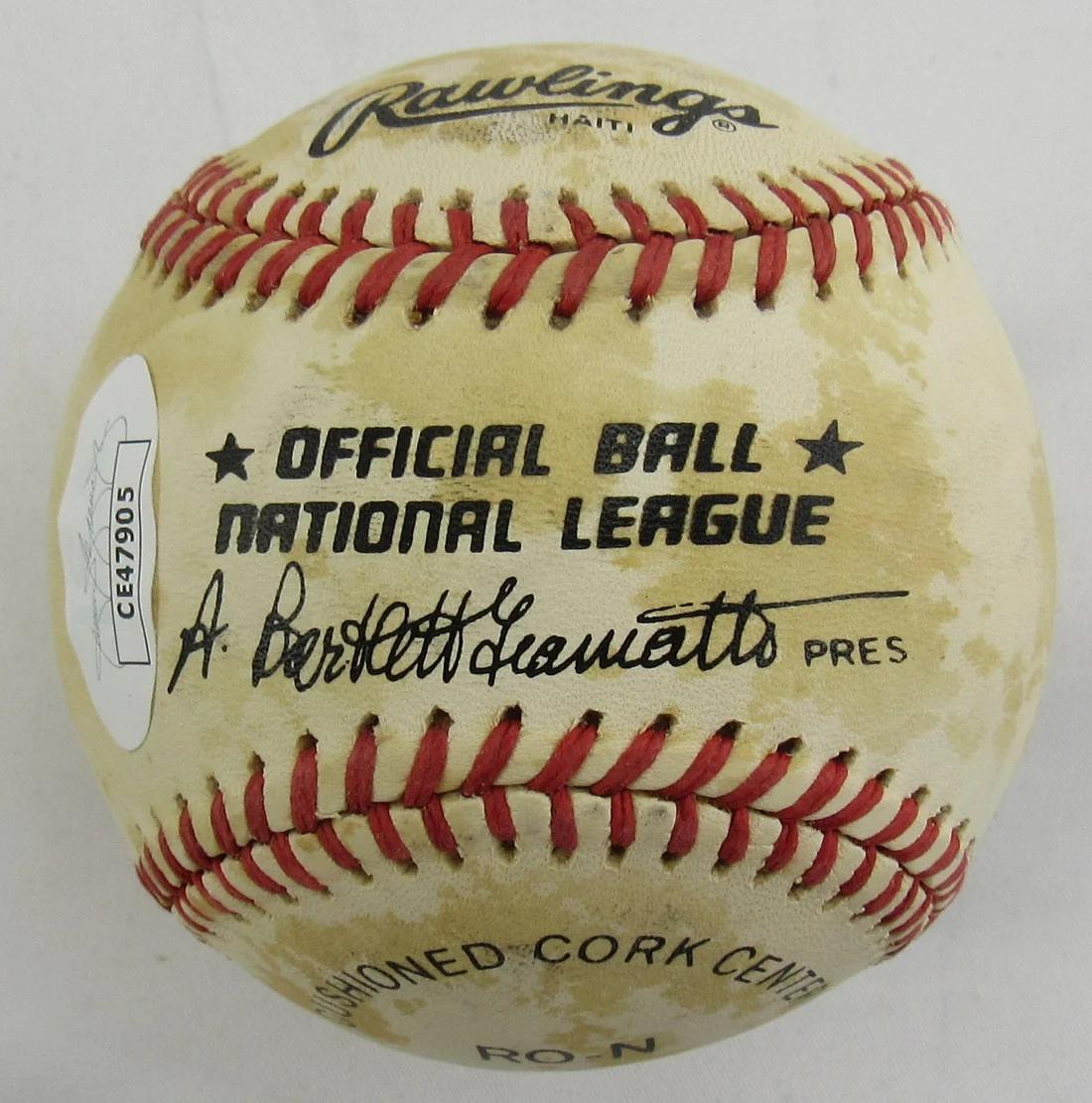 Rawlings Official National League baseball has been hand-signed by Tom Seaver (D. 2020, New York Mets, HOF). Please note, the baseball is naturally toned.