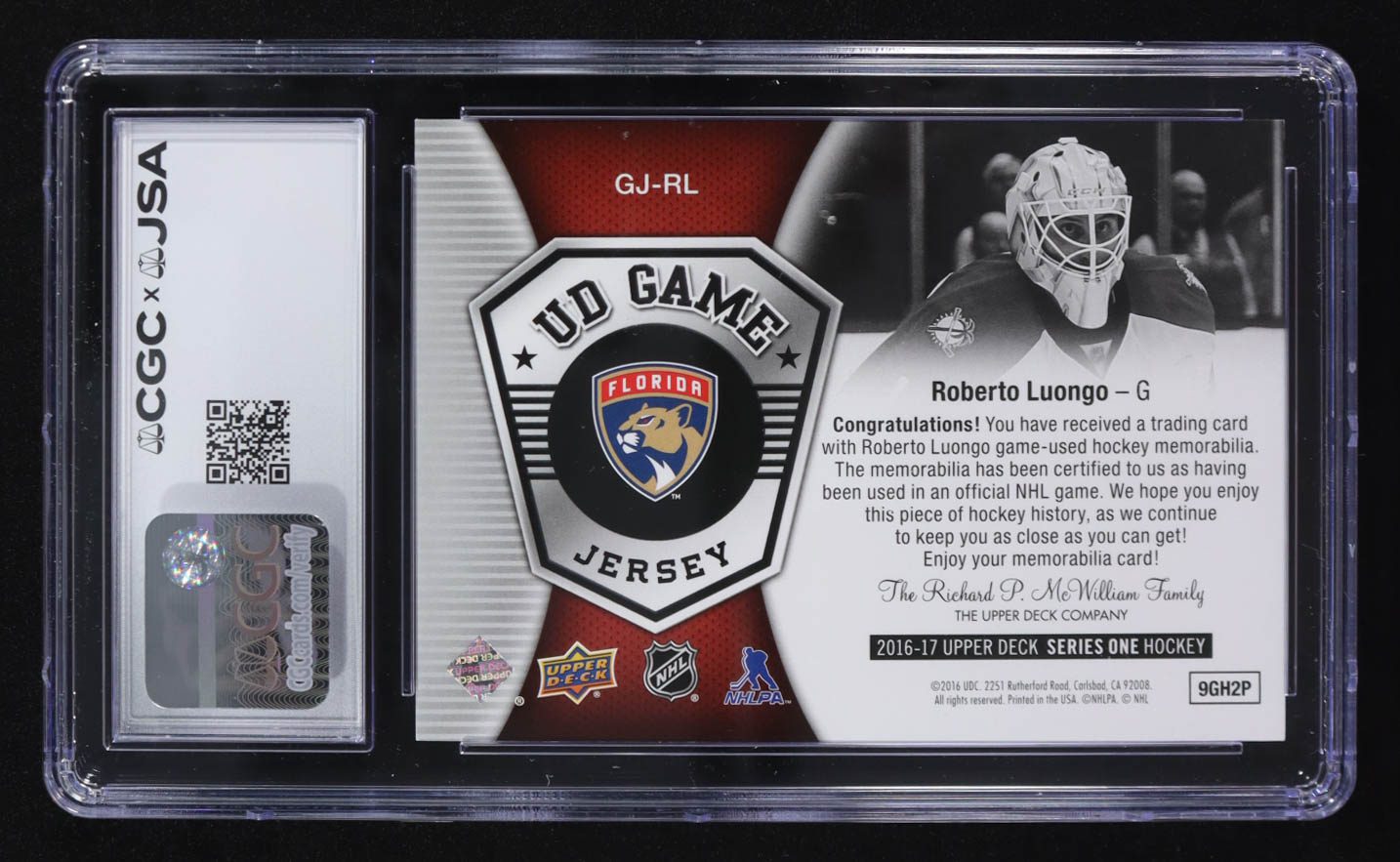 Roberto Luongo Signed 2016-17 Upper Deck Game Jerseys #GJ-RL (CGC)