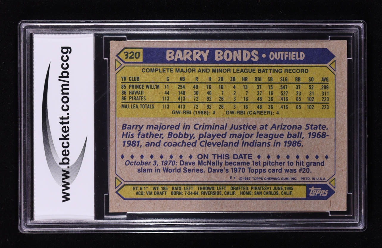 Barry Bonds 1987 Topps #320 RC (BCCG 10)